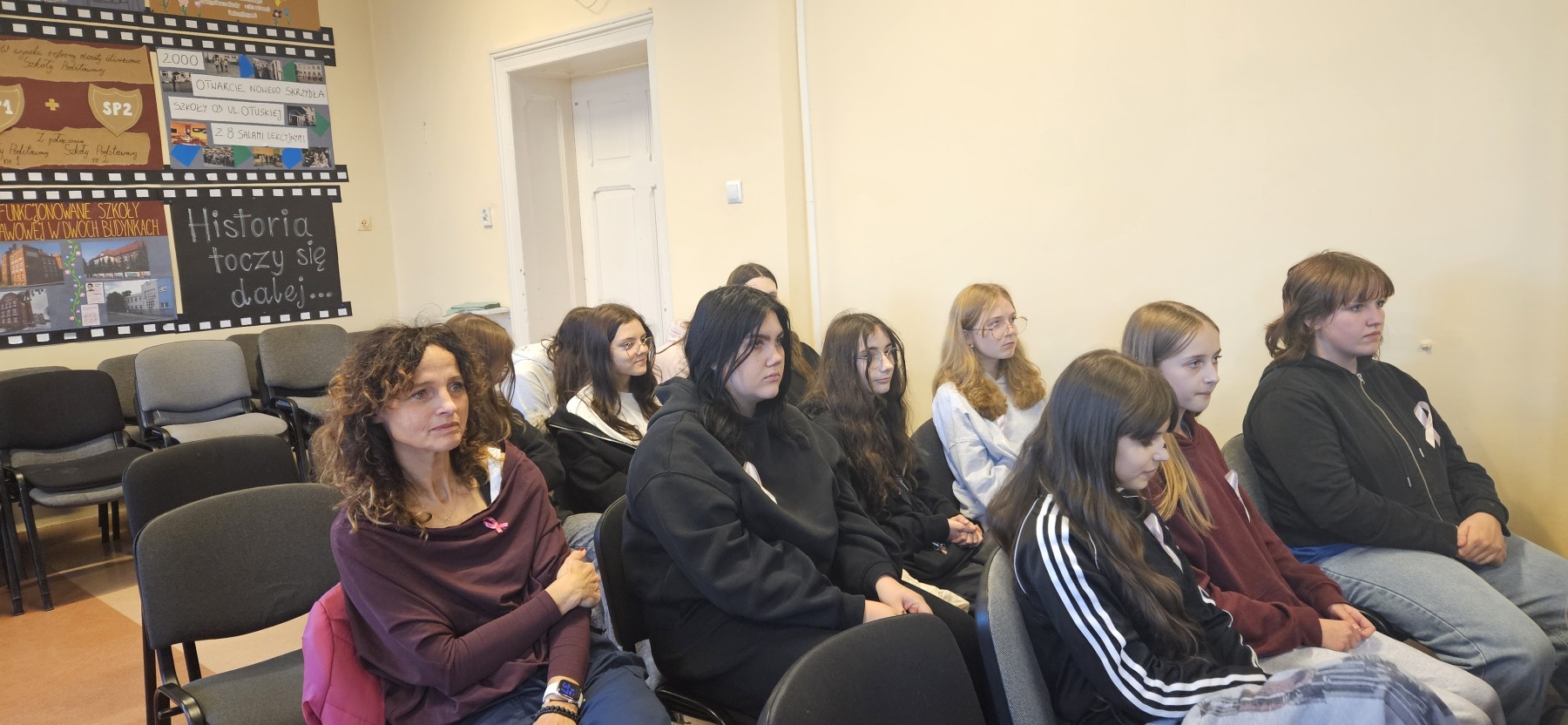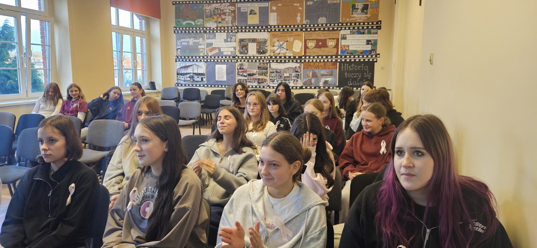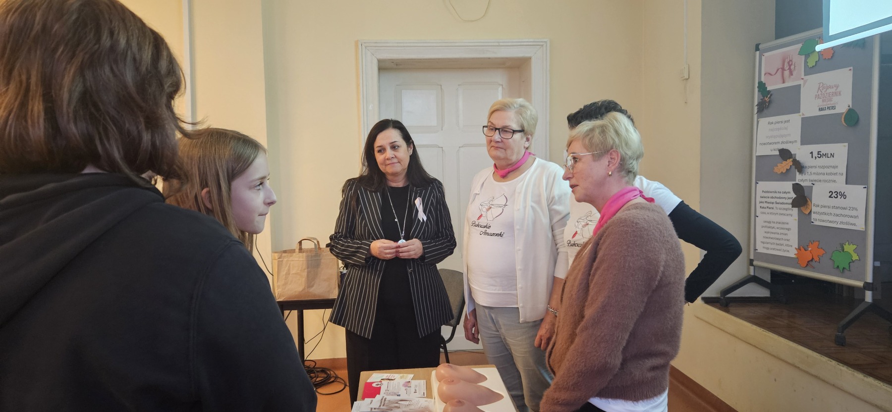 W dniu 4 listopada odbyło się spotkanie uczennic klas VII i VIII z przedstawicielkami stowarzyszenia Amazonek. Celem spotkania było przybliżenie tematyki profilaktyki raka piersi oraz zwrócenie uwagi na znaczenie dbania o zdrowie i regularnych badań. Podczas prelekcji Amazonki opowiedziały o swoich doświadczeniach w walce z chorobą, omówiły metody jej wczesnego wykrywania oraz znaczenie samobadania piersi. Uczennice miały okazję zadać pytania i dowiedzieć się, jak dbać o zdrowy styl życia. Każda z dziewcząt miała okazję zbadać na fantomie zdrową pierś oraz z guzem.