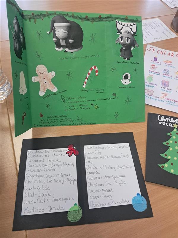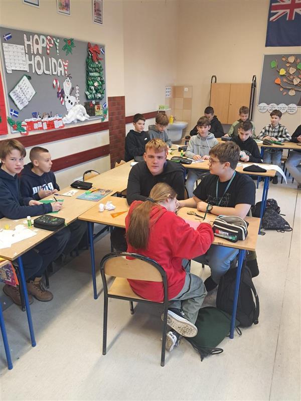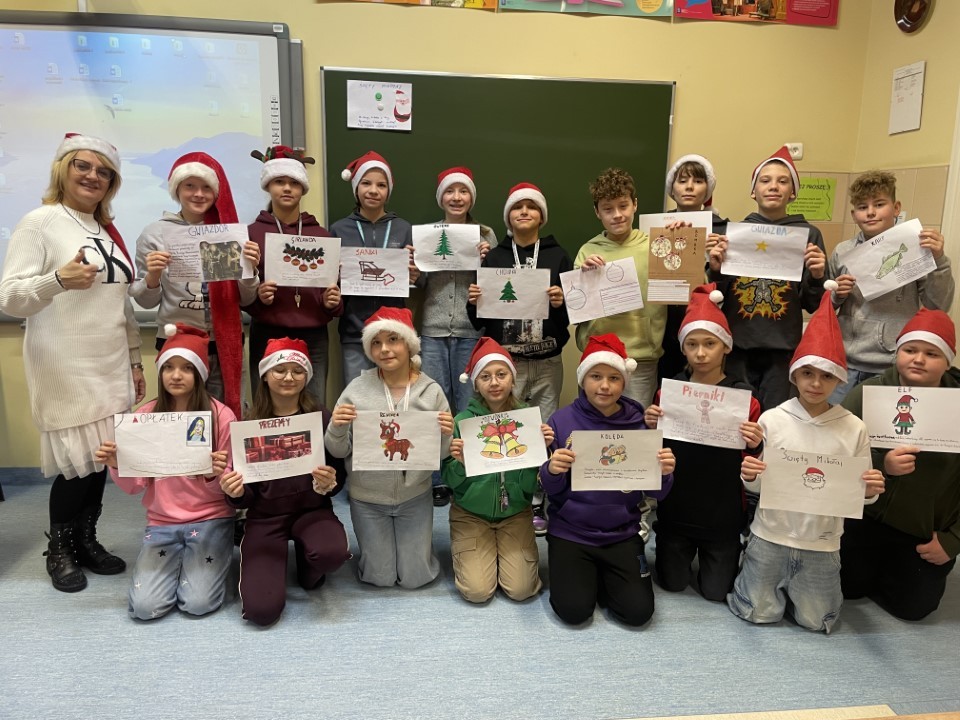W grudniu zrealizowaliśmy kolejne zadania projektu „Bożonarodzeniowe Mosty”. Uczniowie wykonali zadania matematyczne, a także stworzyli słownik języka polskiego dotyczący zagadnień związanych ze świętami Bożego Narodzenia. Nie zabrakło również aktywności ruchowej — świątecznego tańca, który wspólnie zatańczyli. Tuż przed świętami odbyły się także spotkania klas biorących udział w projekcie. Uczniowie odwiedzali się nawzajem, mieli okazję lepiej się poznać oraz wspólnie poczuć świąteczną atmosferę. Klasy projektowe obdarowały się własnoręcznie przygotowanymi kartkami świątecznymi, co było pięknym symbolem życzliwości i współpracy Dziękujemy wszystkim uczestnikom za aktywność i zaangażowanie. Przed nami finałowe działania projektu.