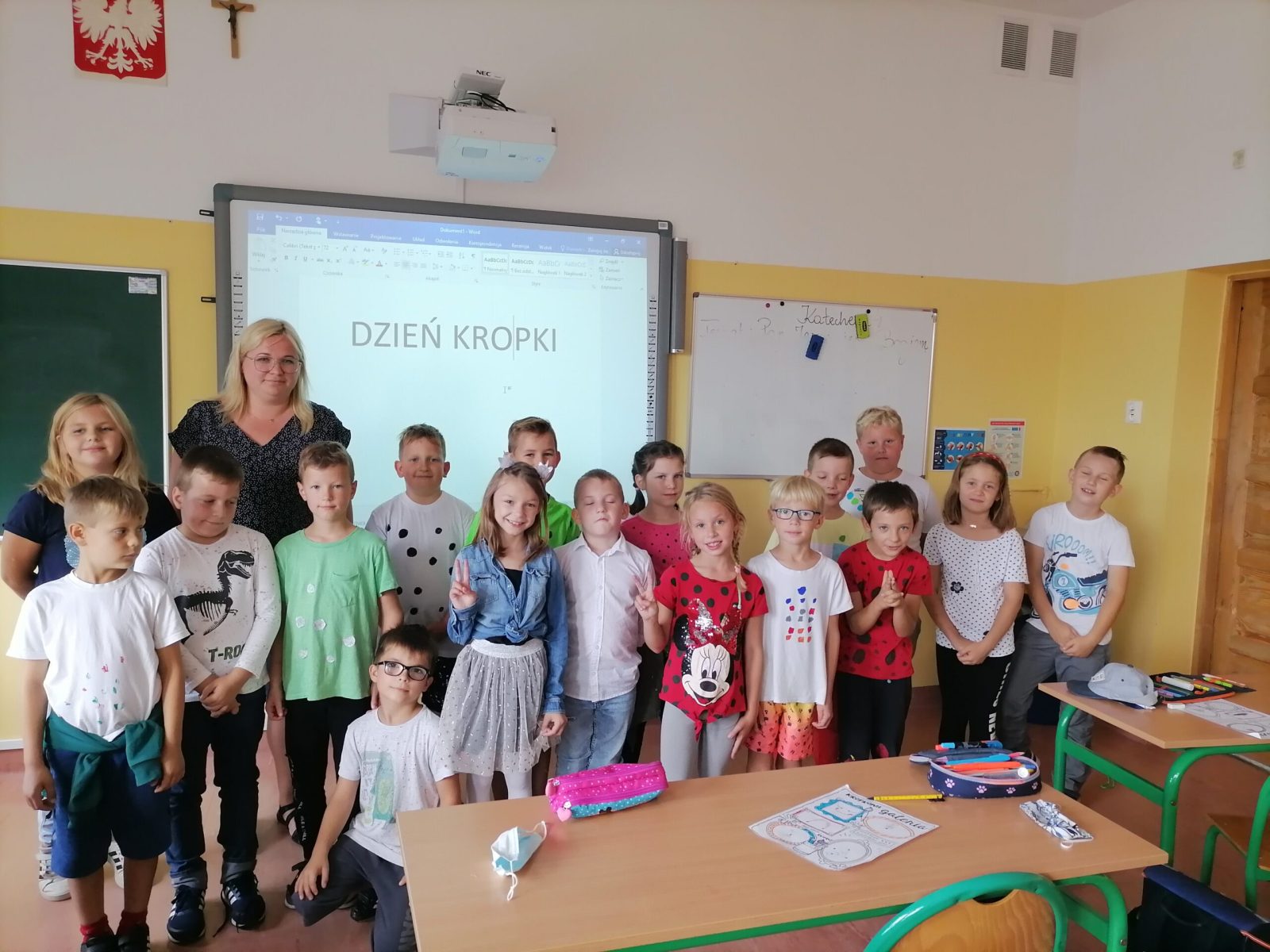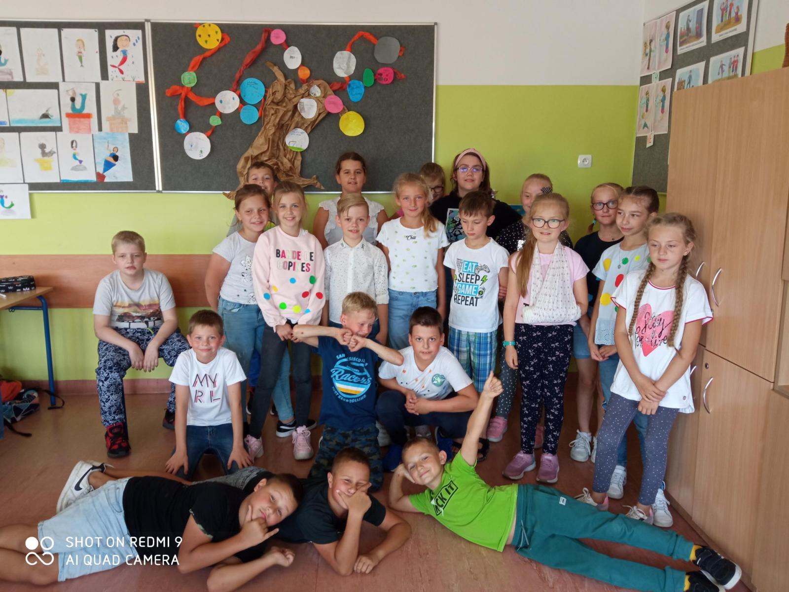 Dzień Kropki to święto inności, kreatywności i rozwijania ukrytego potencjału, bo przecież każdy ma talent, tylko nie zawsze umiemy go odkryć, potrzebujemy kogoś kto ten talent w nas zauważy. W tym dniu dzieci przyszły ubrane w kropki, obejrzały film ,,The Day”, wykonały prace plastyczne przedstawiające swój talent, rysowały kredą kropki na boisku szkolnym, a uczniowie klas 3 wykonali Drzewa Talentów.
