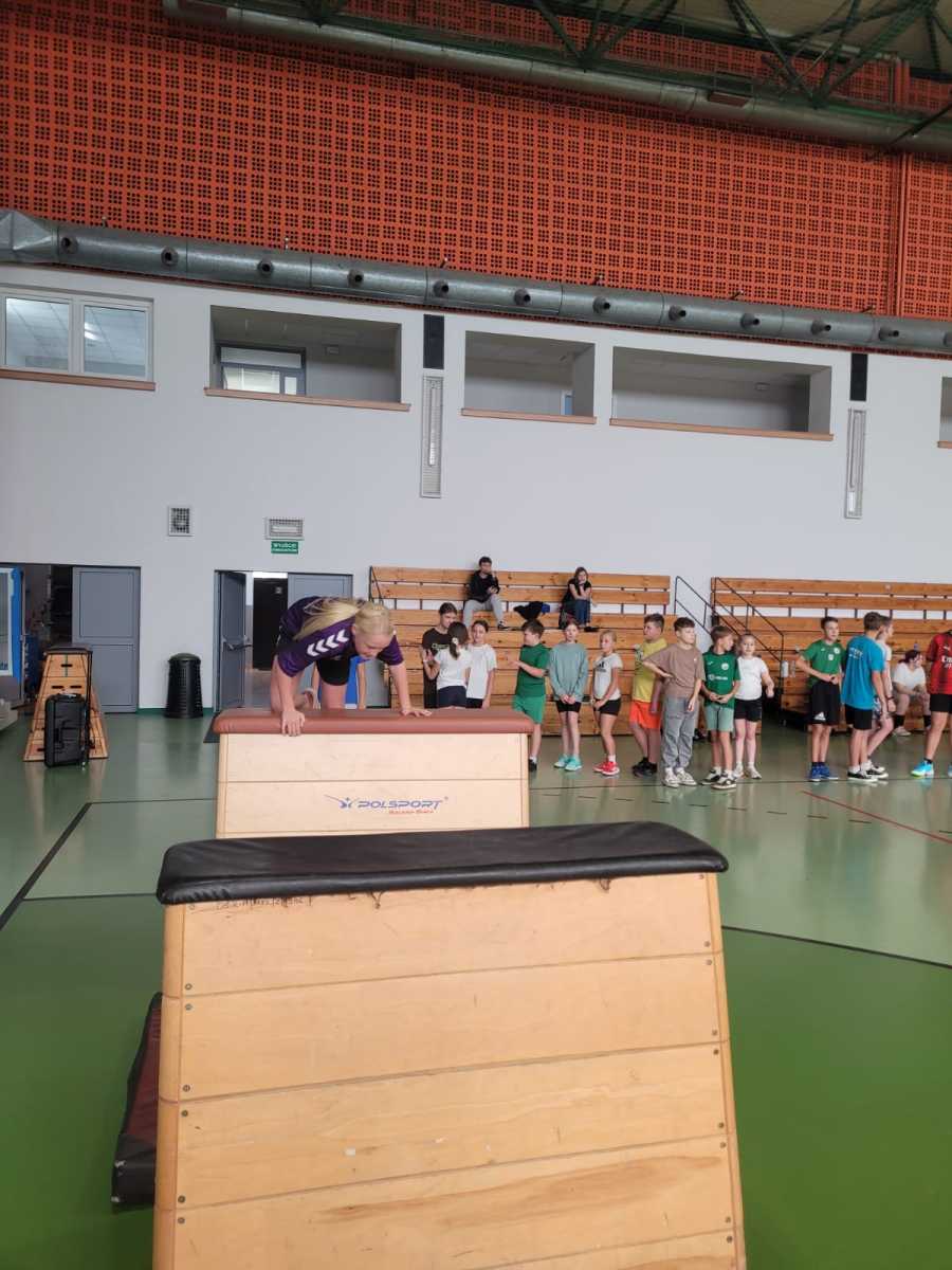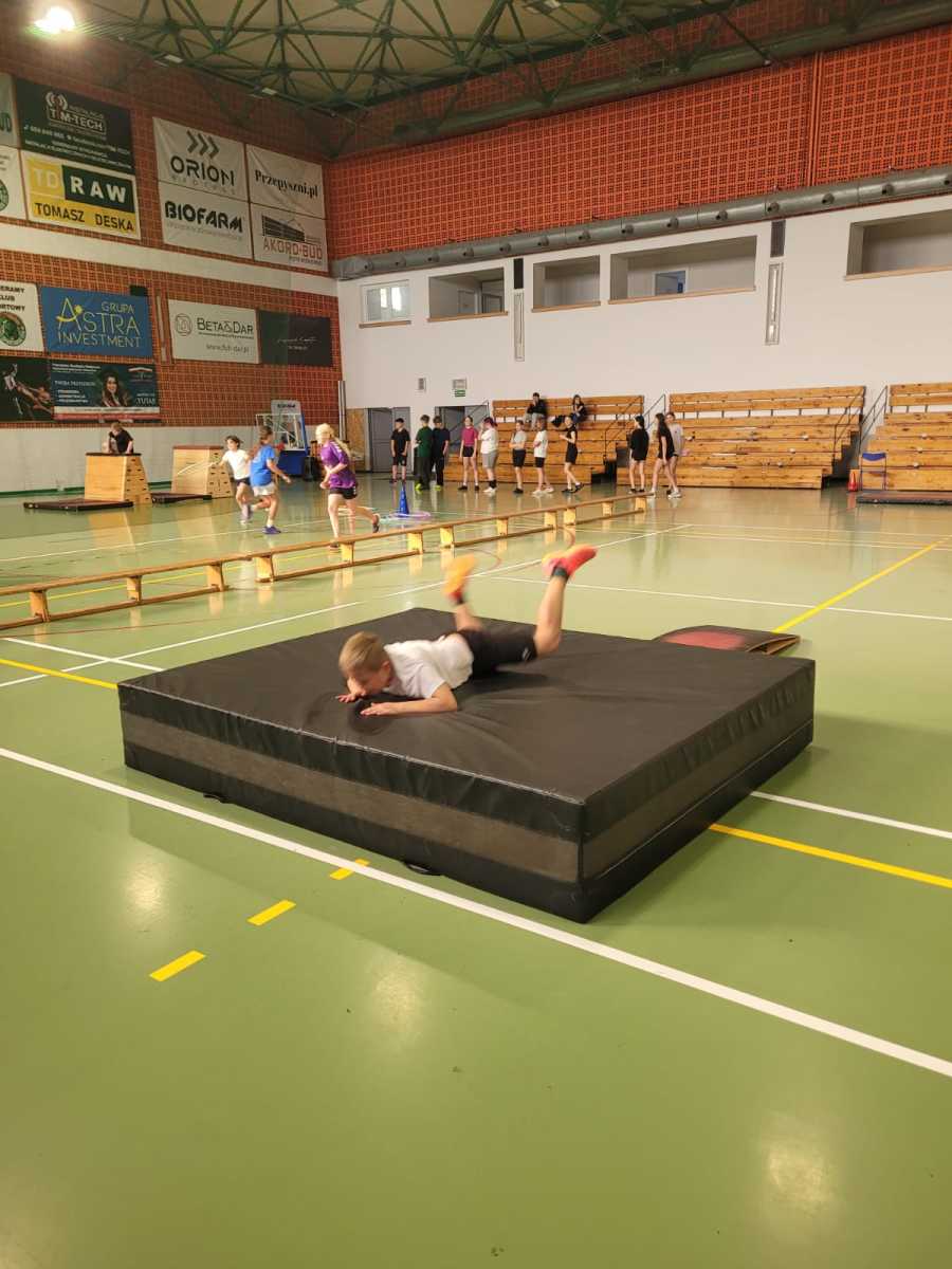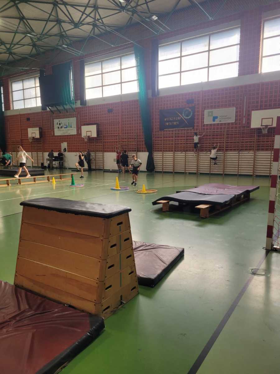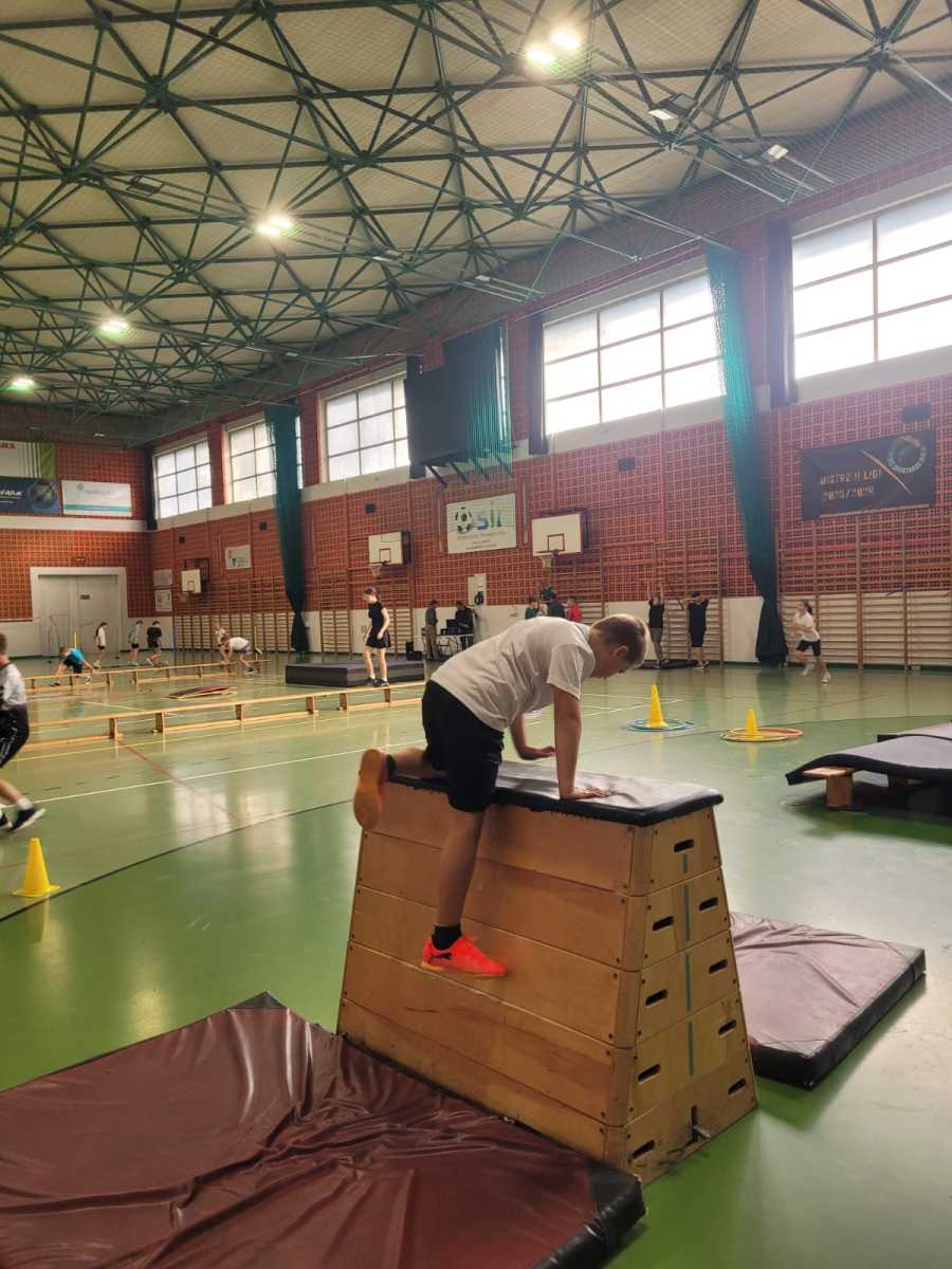 W dniu 26 września 2025r. obchodziliśmy Europejski Dzień Sportu Szkolnego (ESSD – European School Sport Day). To wyjątkowe święto ruchu, które promuje aktywność fizyczną i zdrowy styl życia od najmłodszych lat wśród dzieci i młodzieży na całym świecie. Jego celem jest pokazanie również, że ruch to świetna zabawa i sposób na budowanie pozytywnych relacji w społeczności szkolnej. Europejski Dzień Sportu Szkolnego odbywa się corocznie od 2015 roku, włączając w obchody szkoły nie tylko z Europy, ale także Azji, Afryki i Ameryki Południowej. Tegoroczna edycja ESSD została objęta patronatem honorowym UNICEF Polska, odbyła się pod hasłem „siła współpracy”. Na lekcjach wychowania fizycznego uczniowie klas 1-3 wykonywali zadania ruchowe, które dostarczyły im wiele radości i pozwoliły na aktywne spędzenie czasu. Uczniowie klas 4-8 pokonywali urozmaicony i wymagający tor przeszkód, a po jego pokonaniu odpowiadali na wylosowane pytania z zakresu sportu i olimpizmu. Każda poprawna odpowiedź to był jeden punkt dla klasy. Uczniowie byli bardzo zaangażowani, widać było, że sprawia im to ogromną radość, bardzo chętnie brali udział w tego typu sprawności fizycznej i intelektualnej. Także przerwy międzylekcyjne spędzali aktywnie przy muzyce, wspólnie bawiąc się podczas tańców integracyjnych i wykonując układy ćwiczeń muzyczno-ruchowych. Podczas przerw prezentowało się kółko taneczne „Roztańczone nutki” pod opieką p. Kamili Pawlak, prezentując m.in. popularną Belgijkę. Nie zabrakło aktywnych przerywników, przygotowanych przez nauczycieli wychowania fizycznego, podczas różnych lekcji przedmiotowych. Cały dzień wypełniła zabawa, ruch i wspólna integracja.
