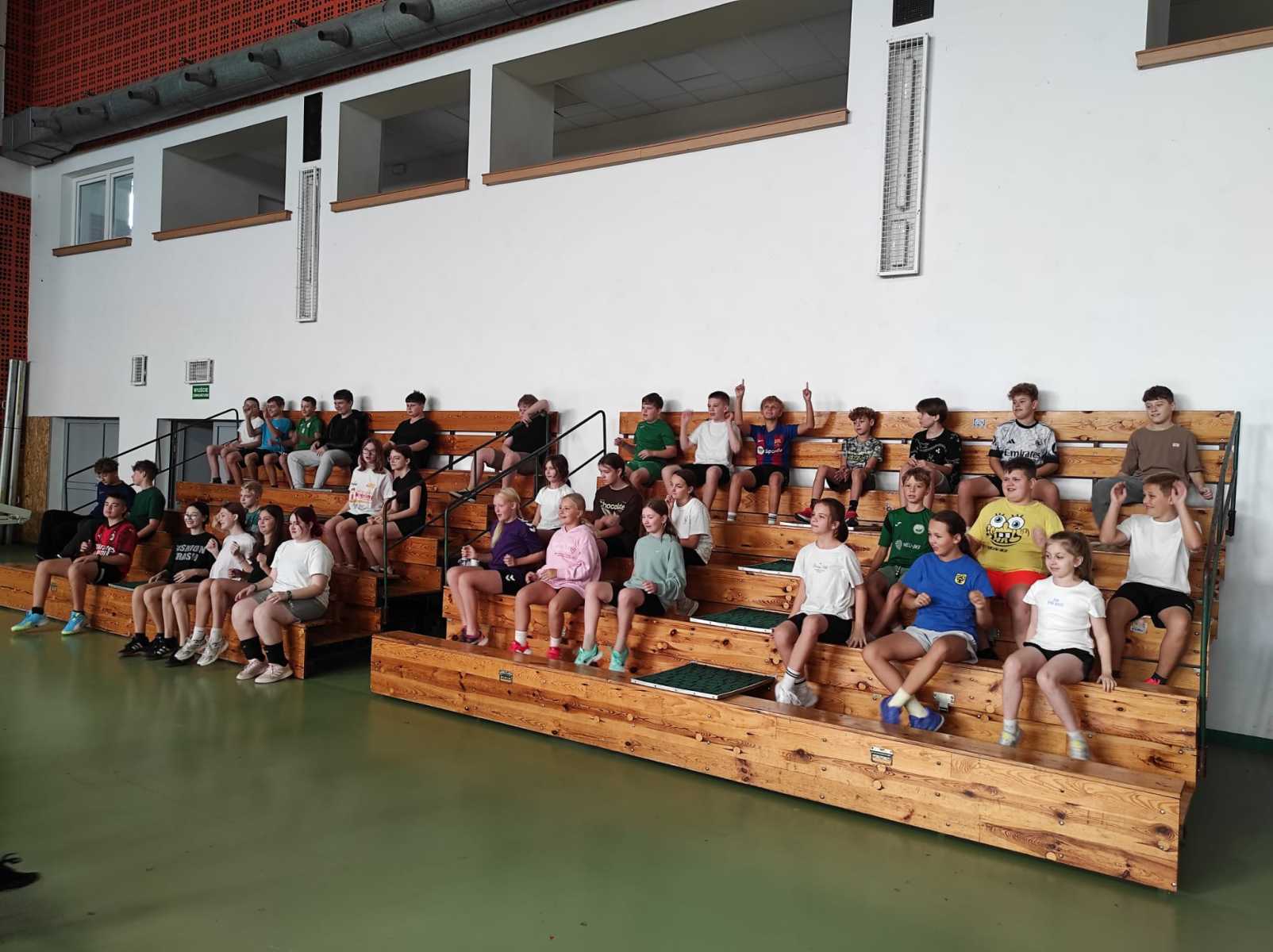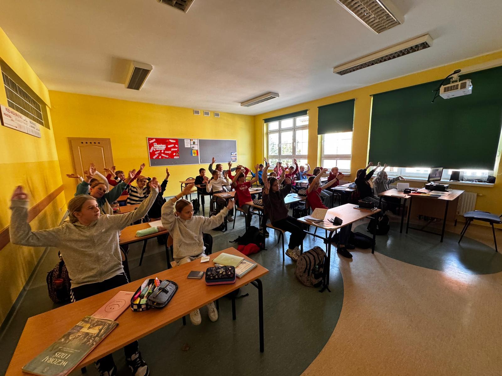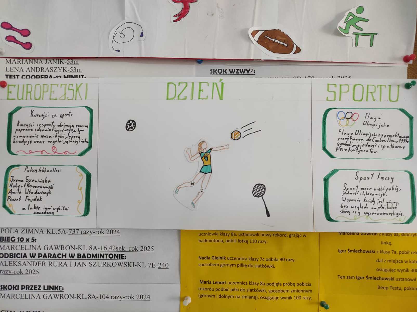 W dniu 26 września 2025r. obchodziliśmy Europejski Dzień Sportu Szkolnego (ESSD – European School Sport Day). To wyjątkowe święto ruchu, które promuje aktywność fizyczną i zdrowy styl życia od najmłodszych lat wśród dzieci i młodzieży na całym świecie. Jego celem jest pokazanie również, że ruch to świetna zabawa i sposób na budowanie pozytywnych relacji w społeczności szkolnej. Europejski Dzień Sportu Szkolnego odbywa się corocznie od 2015 roku, włączając w obchody szkoły nie tylko z Europy, ale także Azji, Afryki i Ameryki Południowej. Tegoroczna edycja ESSD została objęta patronatem honorowym UNICEF Polska, odbyła się pod hasłem „siła współpracy”. Na lekcjach wychowania fizycznego uczniowie klas 1-3 wykonywali zadania ruchowe, które dostarczyły im wiele radości i pozwoliły na aktywne spędzenie czasu. Uczniowie klas 4-8 pokonywali urozmaicony i wymagający tor przeszkód, a po jego pokonaniu odpowiadali na wylosowane pytania z zakresu sportu i olimpizmu. Każda poprawna odpowiedź to był jeden punkt dla klasy. Uczniowie byli bardzo zaangażowani, widać było, że sprawia im to ogromną radość, bardzo chętnie brali udział w tego typu sprawności fizycznej i intelektualnej. Także przerwy międzylekcyjne spędzali aktywnie przy muzyce, wspólnie bawiąc się podczas tańców integracyjnych i wykonując układy ćwiczeń muzyczno-ruchowych. Podczas przerw prezentowało się kółko taneczne „Roztańczone nutki” pod opieką p. Kamili Pawlak, prezentując m.in. popularną Belgijkę. Nie zabrakło aktywnych przerywników, przygotowanych przez nauczycieli wychowania fizycznego, podczas różnych lekcji przedmiotowych. Cały dzień wypełniła zabawa, ruch i wspólna integracja.