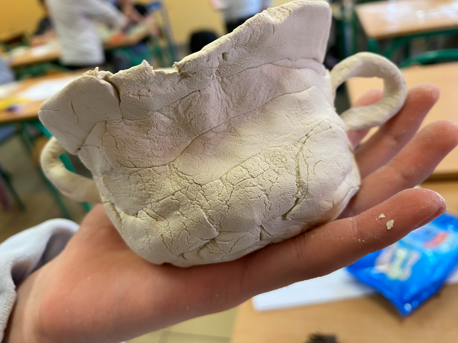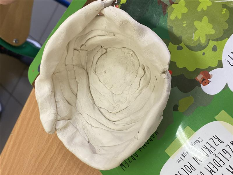Na lekcji plastyki uczniowie klasy 4b poznali technikę wałeczkową lepienia naczyń z gliny. Następnie wykorzystali ją w praktyce, tworząc własne, kreatywne projekty.