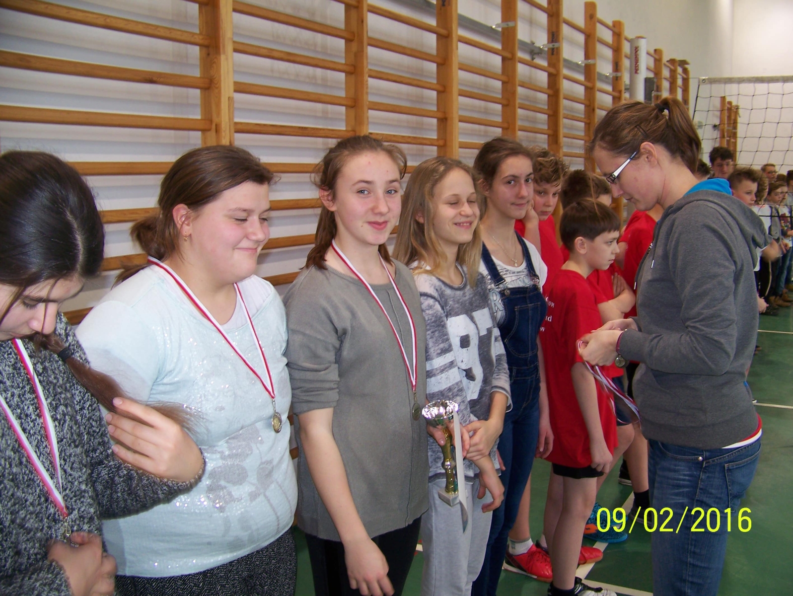 Dnia 09.02.2016r. nasze reprezentacje w piłce siatkowej dziewcząt i chłopców w składzie: Zuzanna Świderska-6a, Patrycja Faber-kl.6b, Zuzanna Glinka-kl.6b, Marianna Puncewicz-kl.6b, Anna Duda-kl.6b, Sandra Ignasiak-kl.6b, Martyna Wojcińska-kl.6c