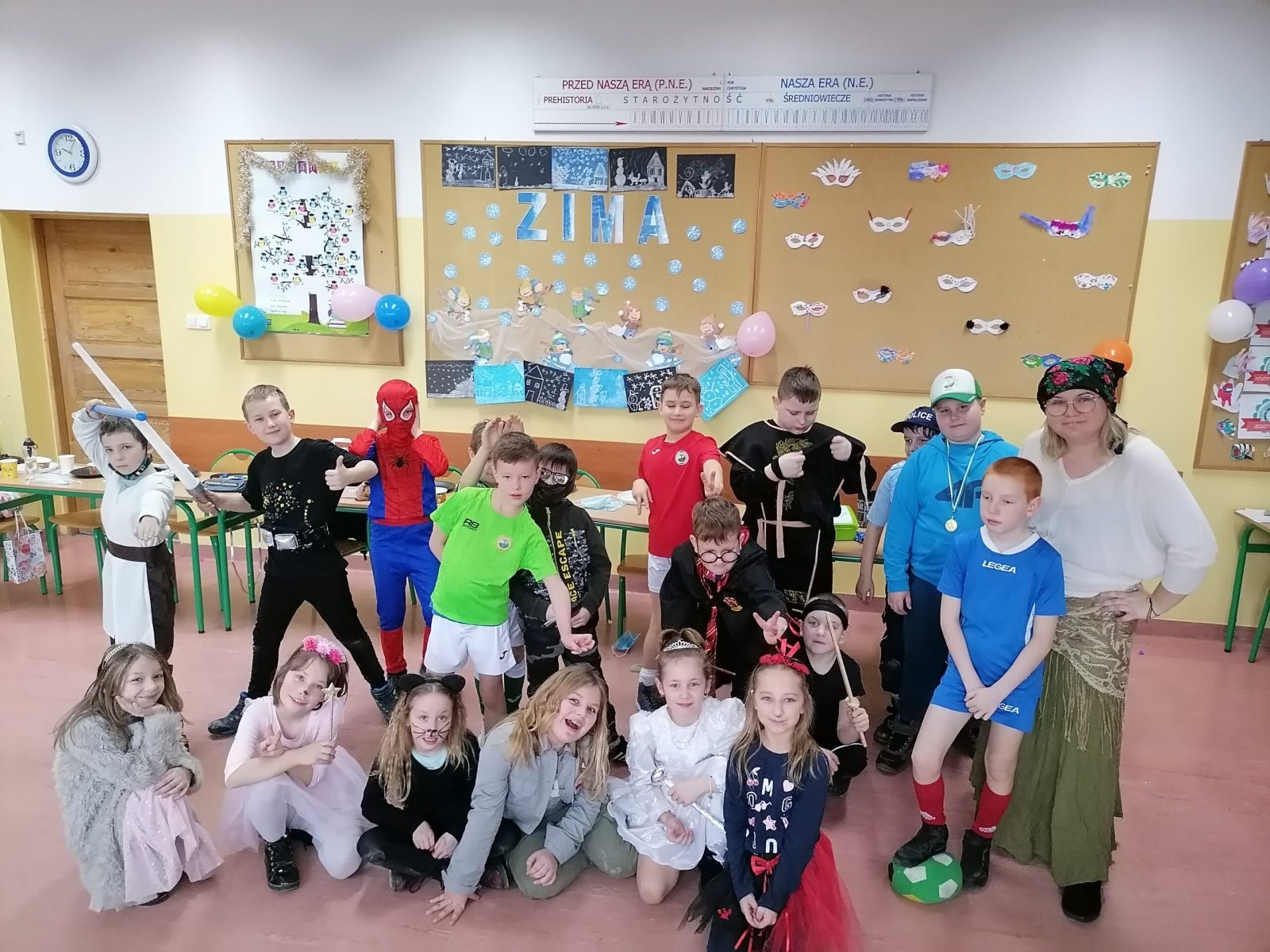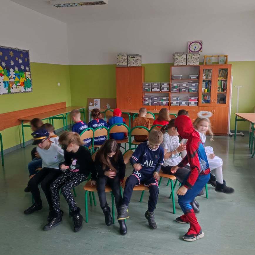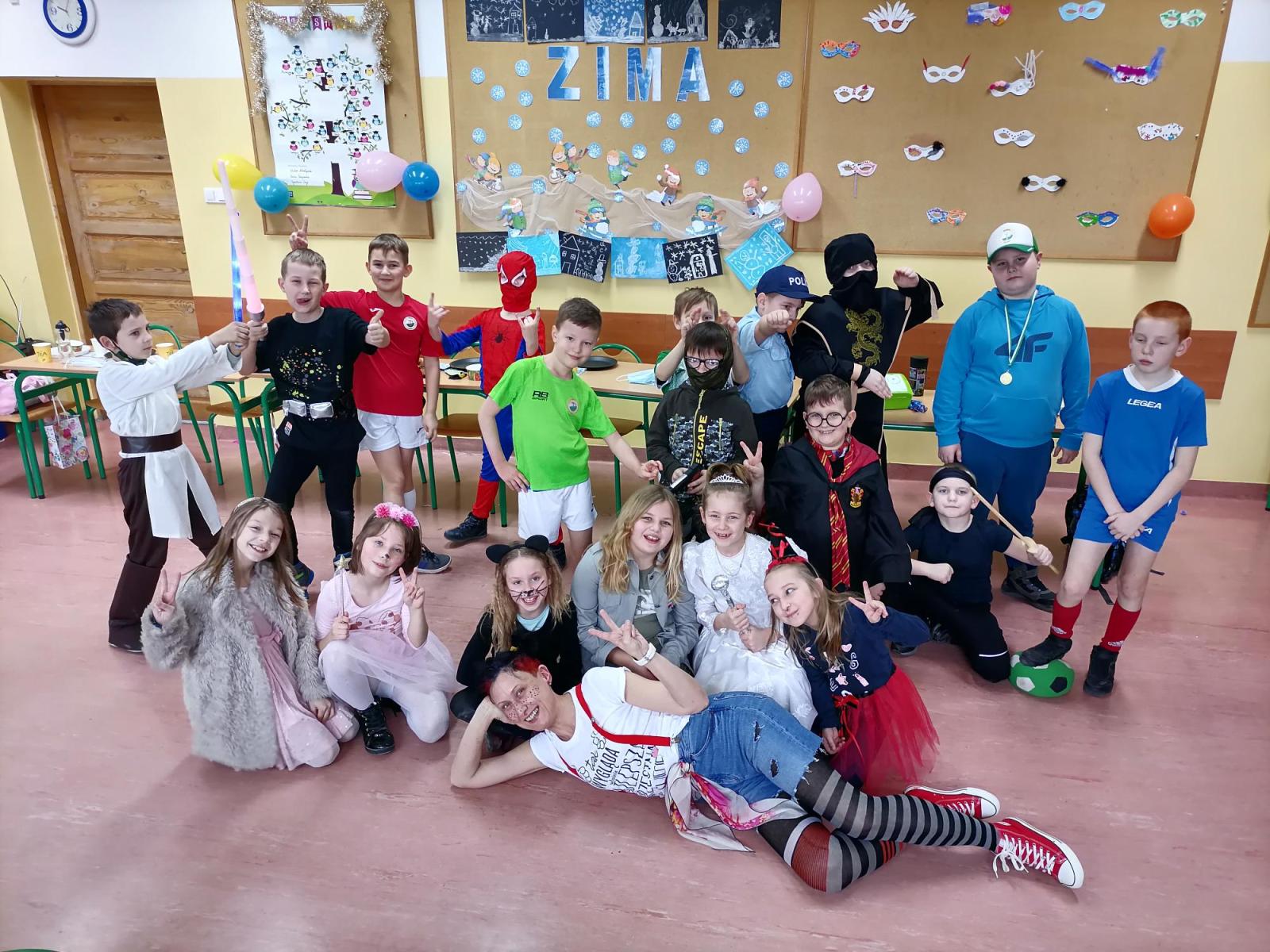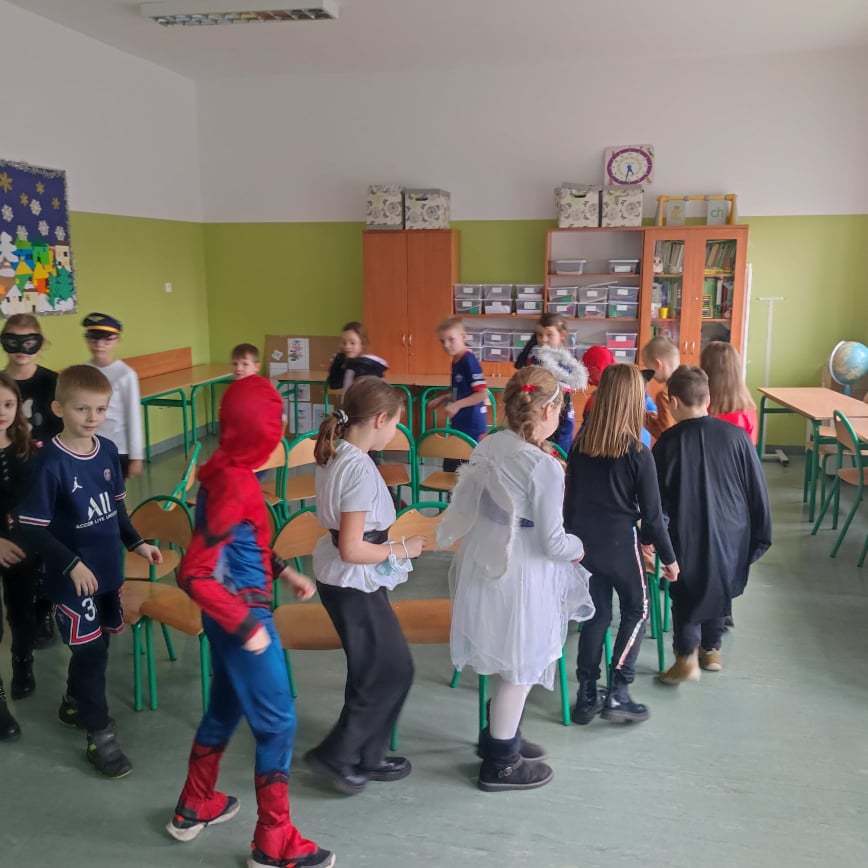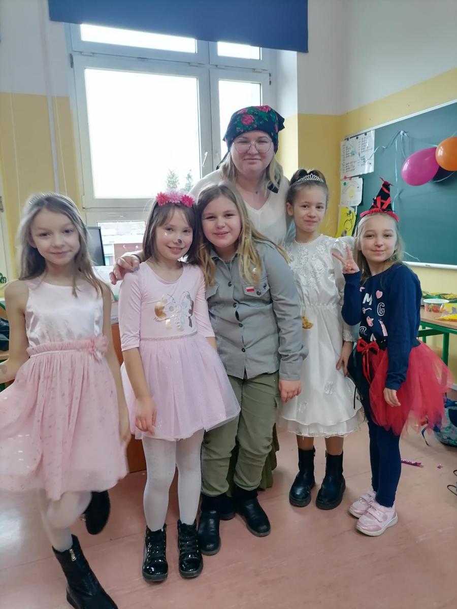„W piątek, 11 lutego, w naszej sali numer 1 odbył się balik karnawałowy. Wzięli w nim udział uczniowie klasy 3a z panią Siekierską. Najpierw przygotowaliśmy salę do zabaw: przestawiliśmy ławki i krzesła, udekorowaliśmy ją balonami. Na stołach rozłożyliśmy poczęstunek: babeczki, ciastka, chrupki. Następnie przebraliśmy się w kostiumy. Kilka dziewczyn było księżniczkami. Pojawiły się postacie z „Gwiezdnych Wojen”. Ja miałem strój wojskowego, bo interesuję się militariami. Potem tańczyliśmy i bawiliśmy się. Na koniec posprzątaliśmy salę. Bardzo podobał mi się nasz klasowy balik. Mam nadzieję, że w przyszłości będę uczestniczył w podobnej imprezie. Było miło i długo tego nie zapomnę.”