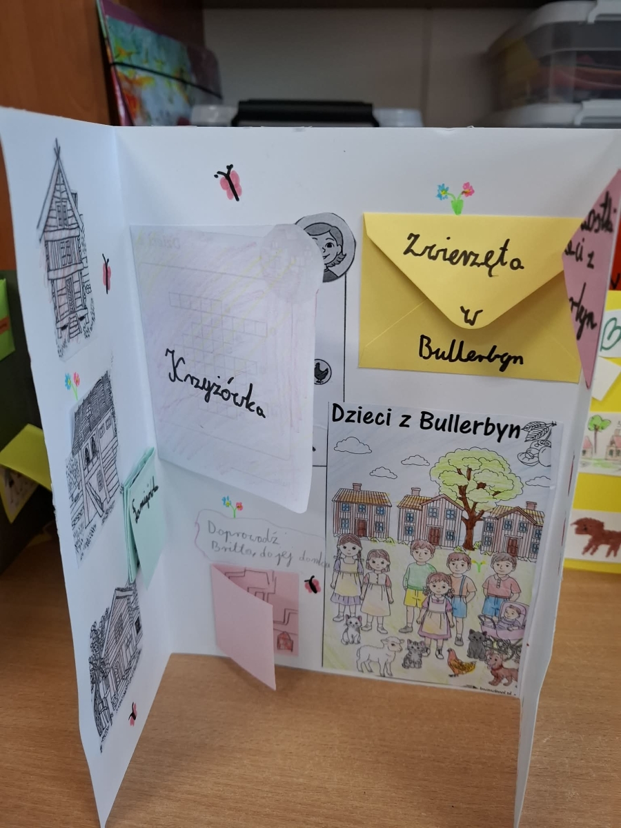 Klasa 3c w ciekawy i kreatywny sposób podsumowała pracę z lekturą „Dzieci z Bullerbyn” Astrid Lindgren. Uczniowie przygotowali kolorowe lapbooki, w których znalazły się opisy bohaterów, ilustracje oraz najważniejsze wydarzenia z książki. Praca sprawiła dzieciom wiele radości i była doskonałą okazją do utrwalenia wiadomości oraz rozwijania wyobraźni. Efekty działań uczniów zachwycają pomysłowością i starannością wykonania.