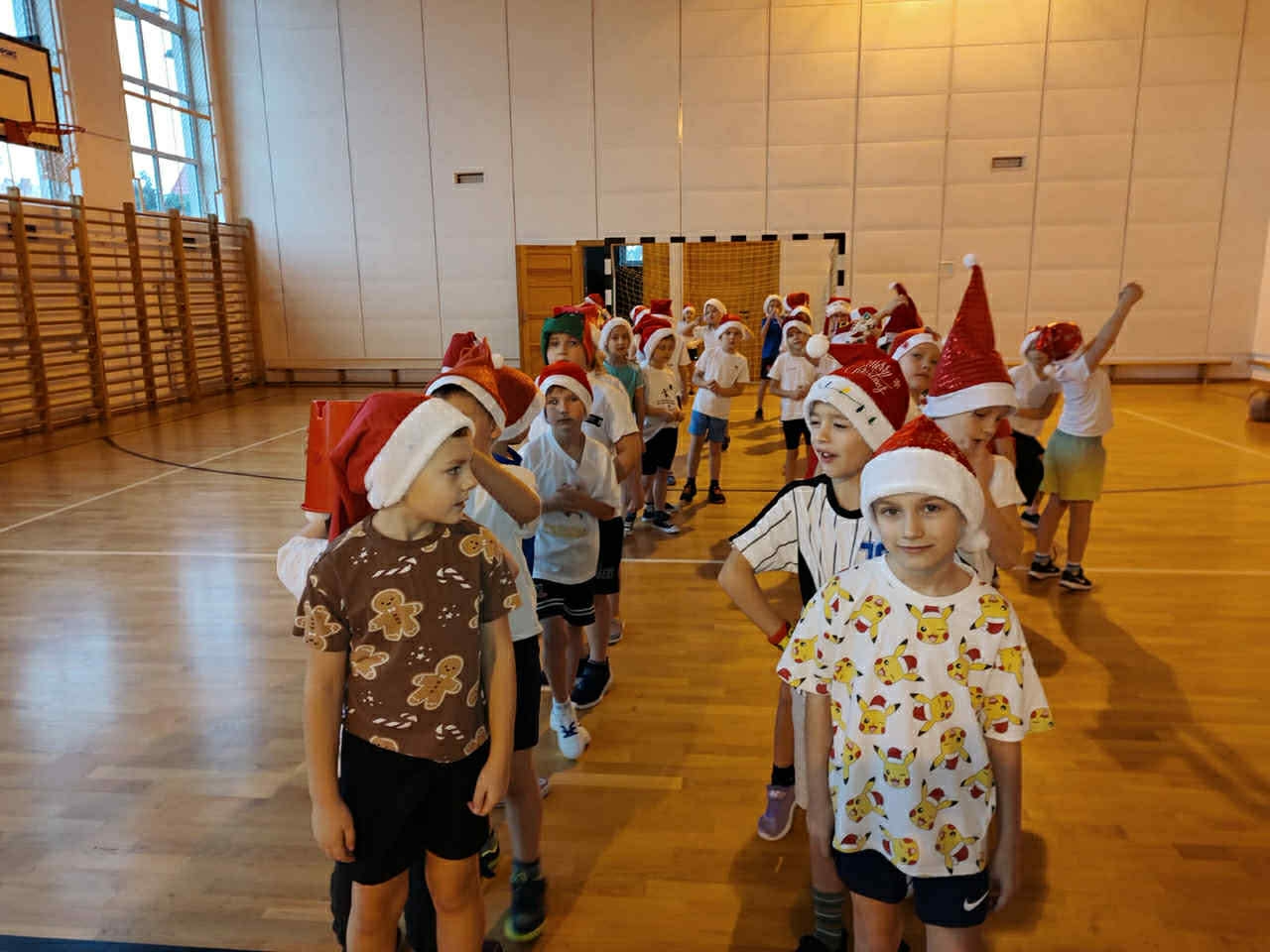 Uczniowie klas pierwszych świętowali mikołajki na sportowo. Tego dnia połączyliśmy ruch, zabawę oraz zagadki. Turniej przebiegał w miłej, radosnej i sportowej atmosferze. Uczniowie wykazali się dużą znajomością wiedzy na temat Świętego Mikołaja i Świąt Bożego Narodzenia. Wszyscy przestrzegali zasad „fair play” i walczyli do samego końca, zostawiając całe serce na boisku.