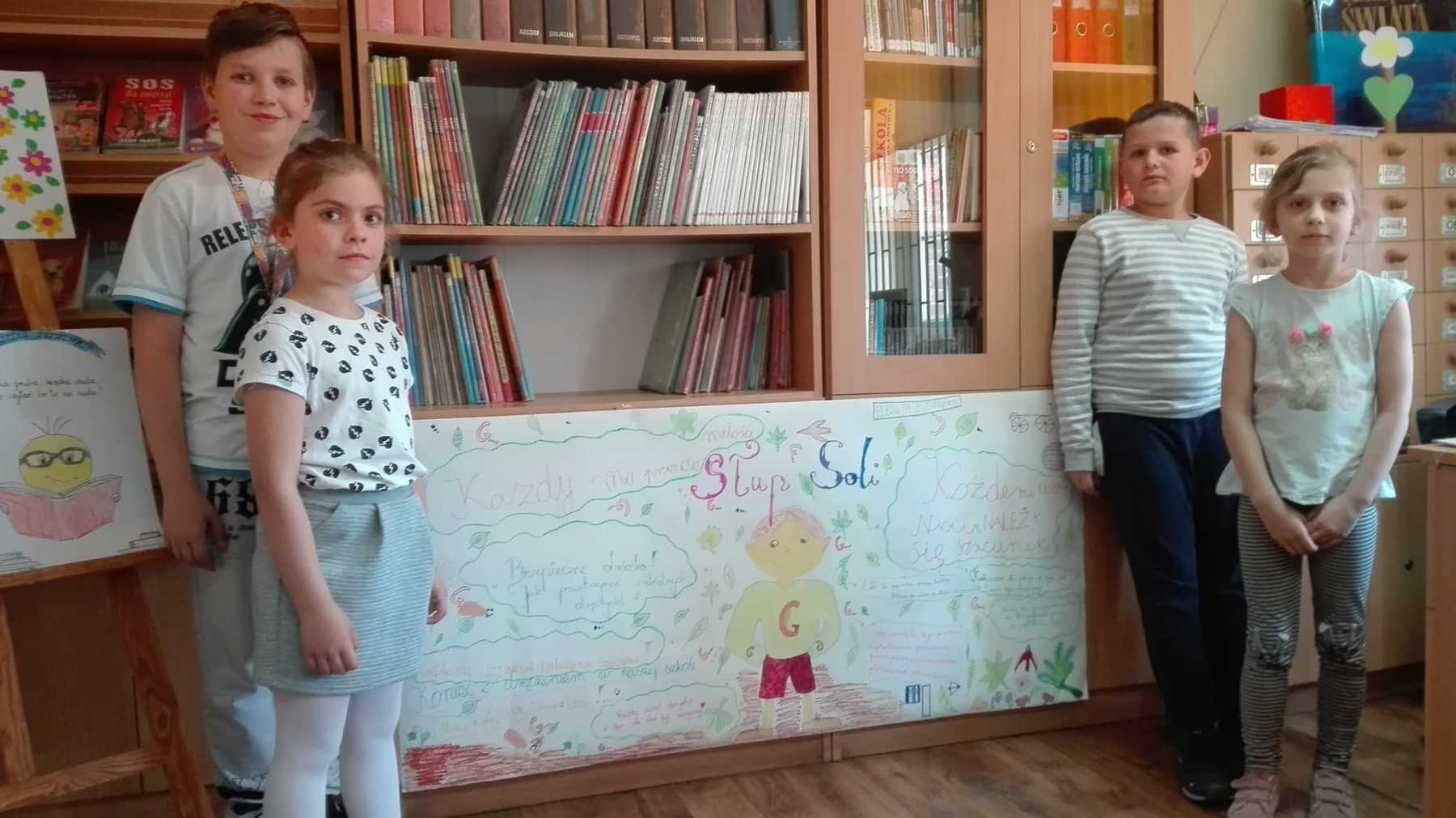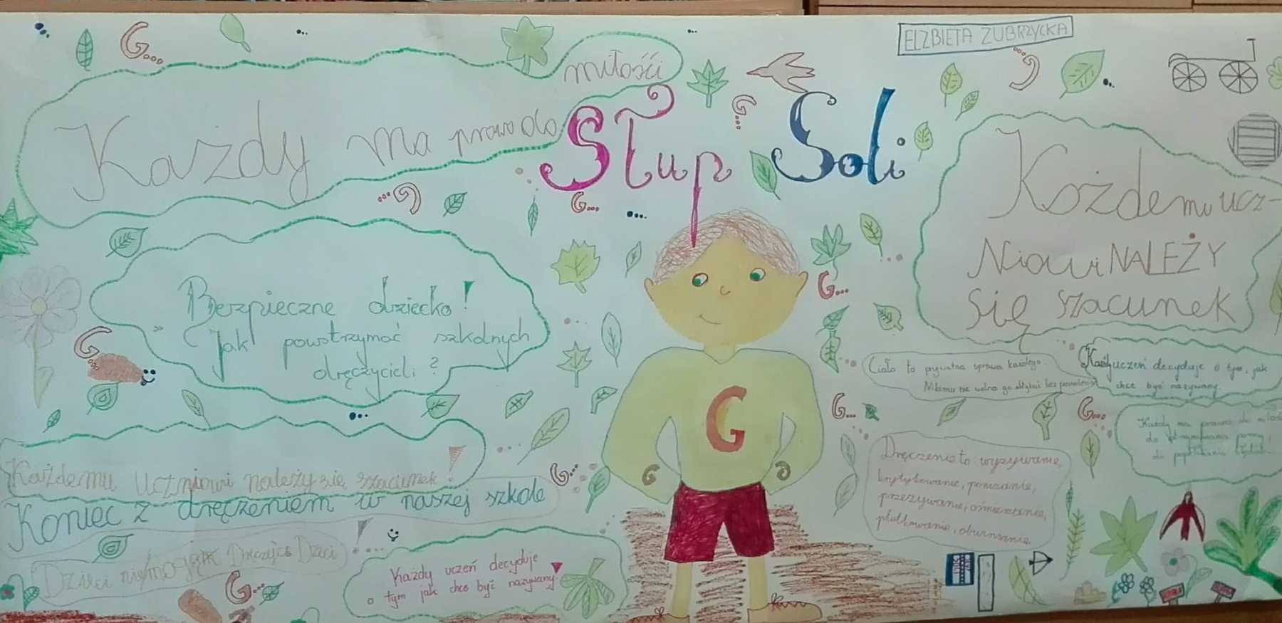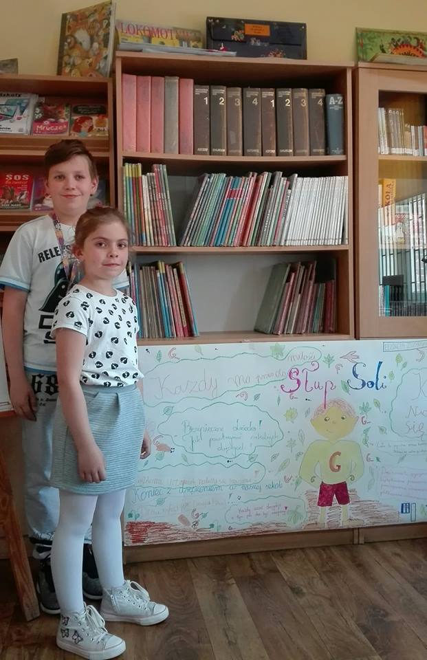 Pewnego kwietniowego dnia, w ramach spotkań z bajką, dzieci wysłuchały książki E. Zubrzyckiej „Słup soli”. Treści w niej zawarte poruszają trudny temat wzajemnego dręczenia. Dręczenie dzieci przez dzieci staje się coraz powszechniejszym zjawiskiem. Książka pokazuje, jak milczenie i bierna postawa obserwatorów wspiera szkolnych dręczycieli i zachęca ich do działania. Co może zrobić pojedyncze dziecko, aby się przeciwstawić? Niewiele. A grupa? O wiele więcej, najpierw jednak musi powstać.