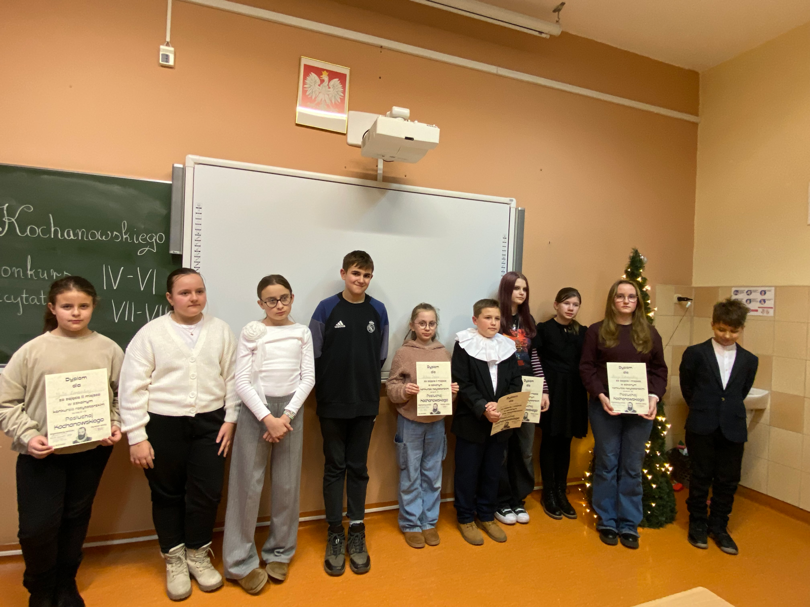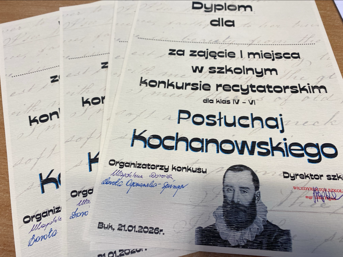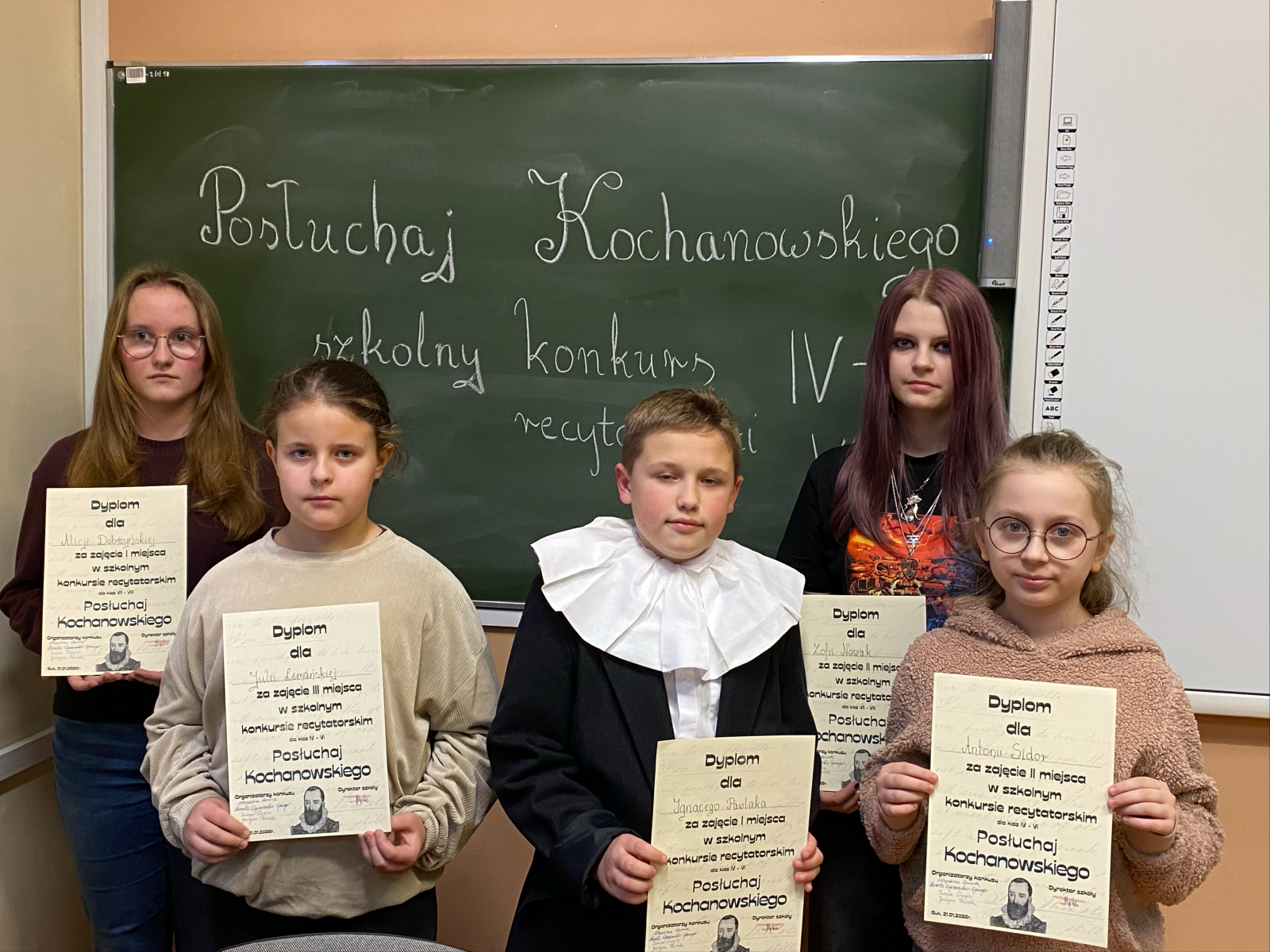 21 stycznia odbył się etap szkolny konkursu recytatorskiego „Posłuchaj Kochanowskiego”, który dostarczył wszystkim uczestnikom i słuchaczom niesamowitych wrażeń. Uczniowie zaprezentowali wysoki poziom artystyczny, mierząc się z różnorodnymi utworami Jana Kochanowskiego – fraszkami oraz pieśniami.