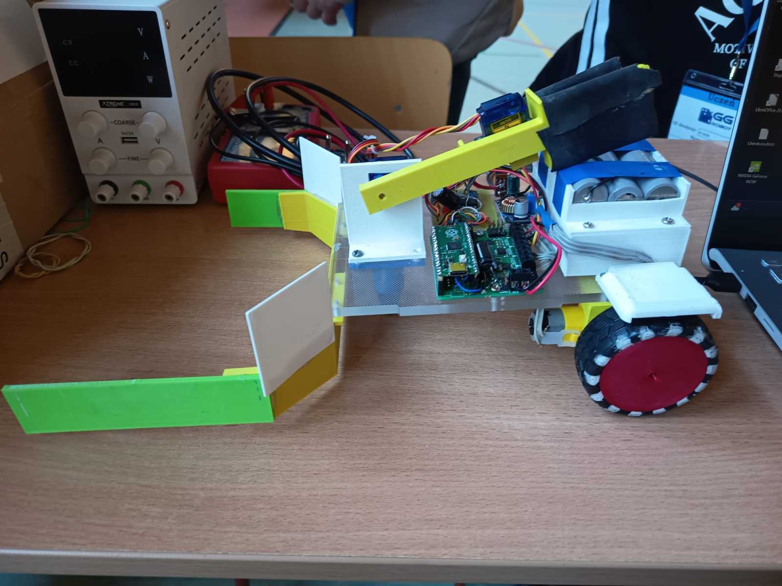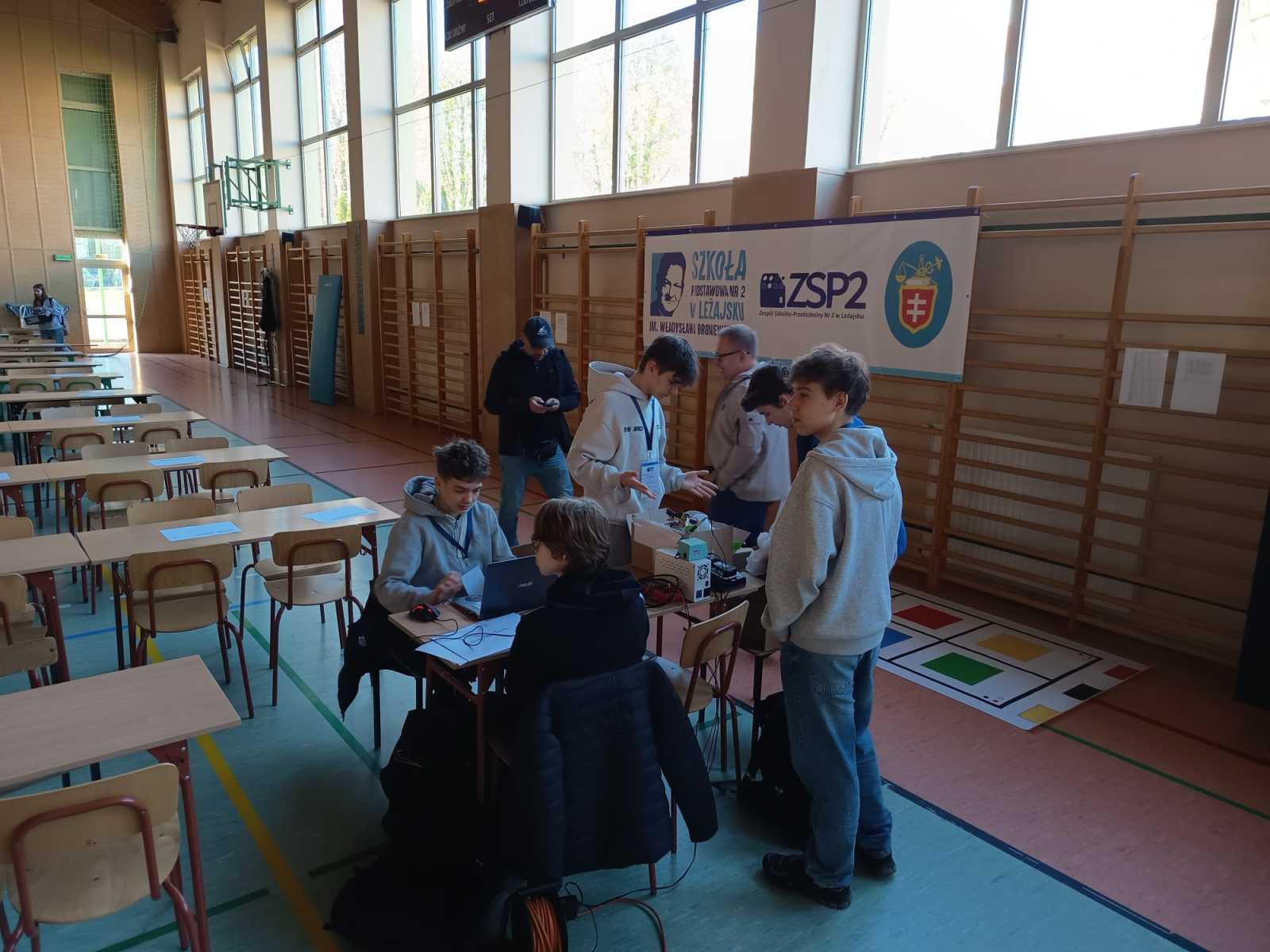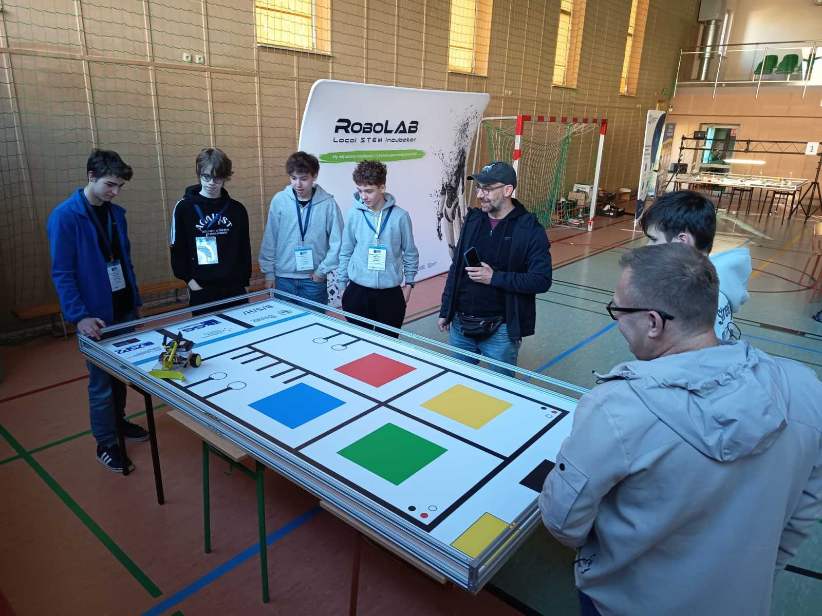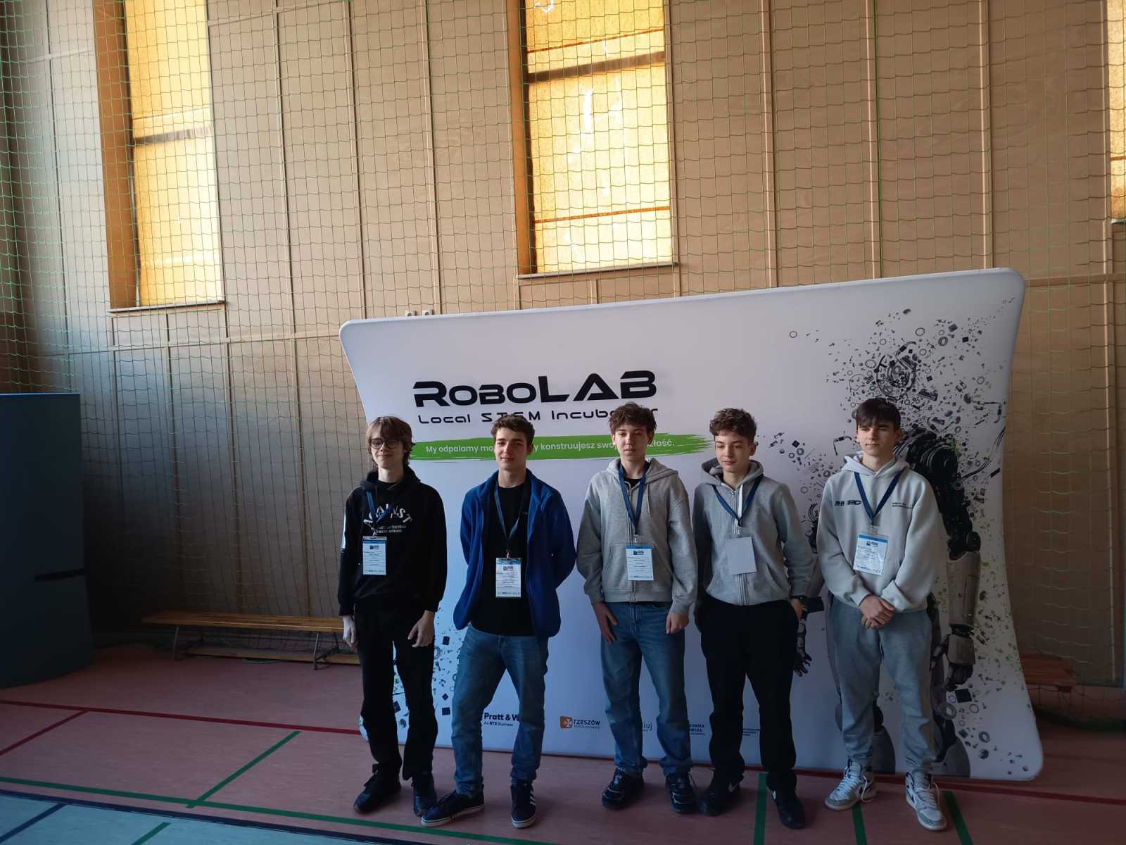 Konkurs „GG Robot” to prestiżowy turniej organizowany przez Podkarpackiego Kuratora Oświaty, którego celem jest rozwijanie zainteresowań uczniów naukami ścisłymi oraz przygotowanie ich do dalszego kształcenia technicznego i politechnicznego. Zawody odbyły się w Hali Sportowej Zespołu Szkolno-Przedszkolnego w Leżajsku. W rywalizacji wzięło udział 80 drużyn z całej Polski. Uczestnicy, pracując zespołowo, realizowali kolejne etapy konkursu – od przygotowania dokumentacji projektowej, obejmującej koncepcję robota i schemat jego działania, po samodzielną budowę urządzenia. Podczas zmagań uczniowie wykorzystywali wiedzę z zakresu nauk ścisłych, technologii, inżynierii i matematyki, a także rozwijali kompetencje językowe i umiejętność pracy zespołowej. Ważnym elementem była również prezentacja projektu przed komisją konkursową. Najbardziej emocjonującą częścią konkursu były walki robotów. Skonstruowane i zaprogramowane przez uczniów maszyny działały autonomicznie, wykorzystując czujniki do analizy otoczenia i podejmowania decyzji. Roboty reagowały m.in. na światło, odległość czy kolor, wykonując zadania na planszy konkursowej. Jesteśmy niezwykle dumni, że w naszej szkole uczą się tak zdolni, ambitni i zaangażowani młodzi ludzie, którzy z powodzeniem reprezentują nas na arenie ogólnopolskiej. Szczególne wyrazy wdzięczności kierujemy do Rodziców naszych uczniów. Dziękujemy za nieocenione wsparcie, zaangażowanie, poświęcony czas oraz obecność na każdym etapie przygotowań i udziału w konkursie. To właśnie dzięki Państwa pomocy i motywacji młodzież może rozwijać swoje pasje i osiągać tak znaczące sukcesy.