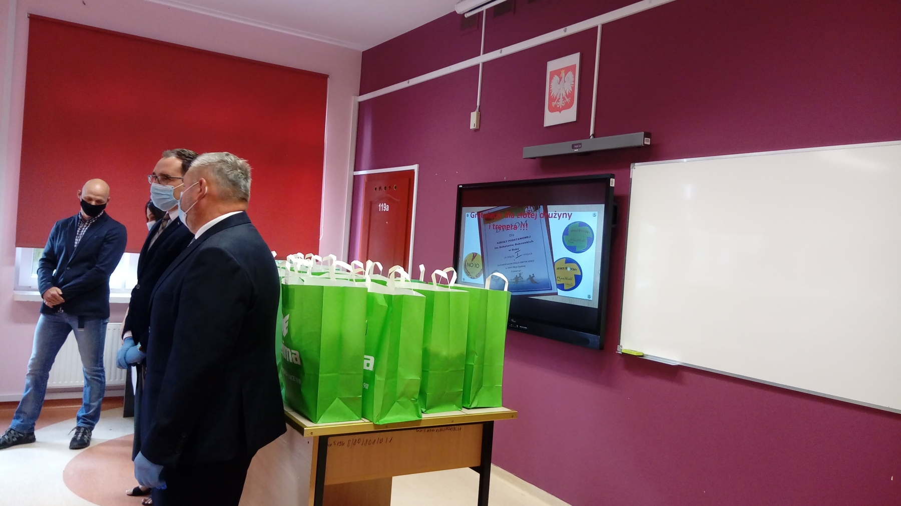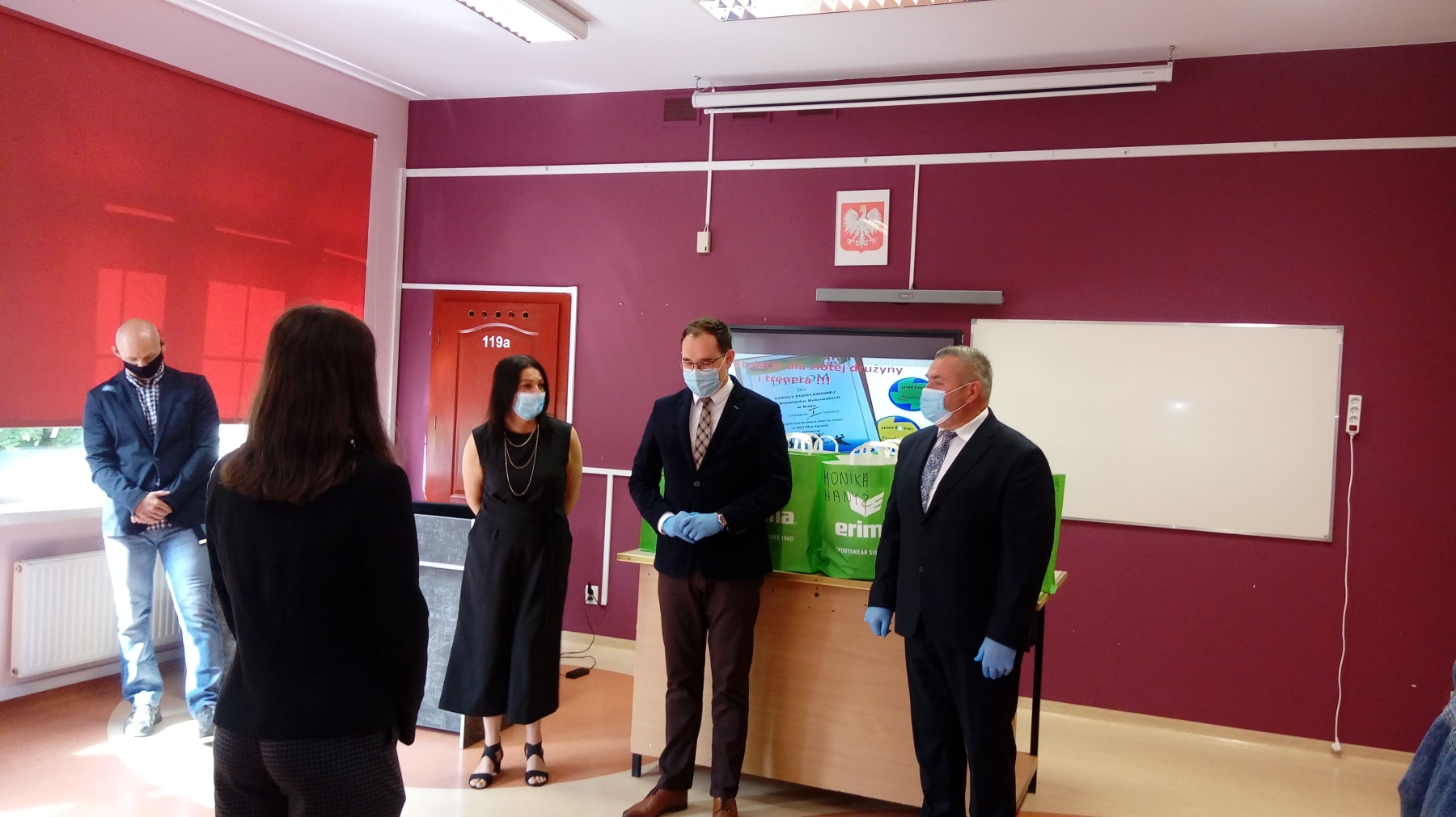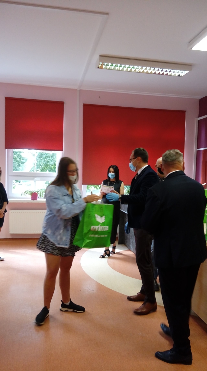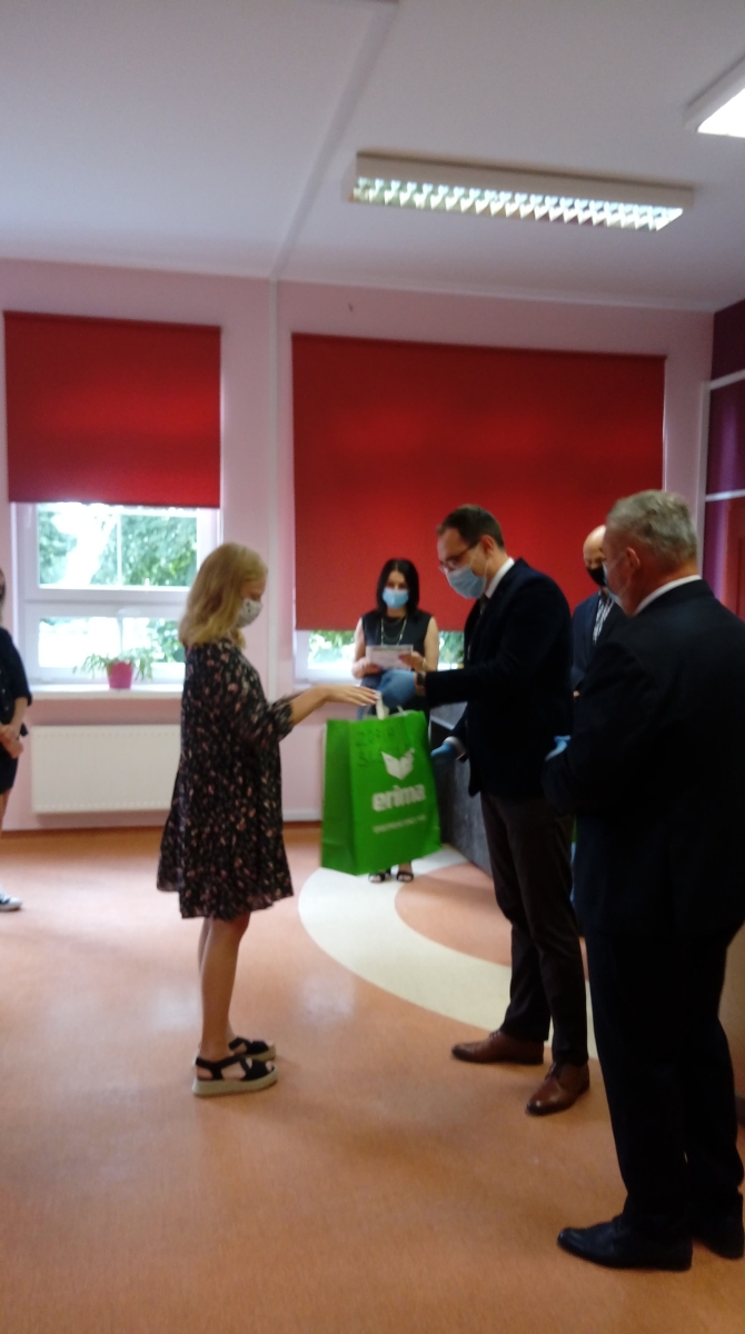 W zeszłym roku na przełomie maja i czerwca w Głuchołazach drużyna dziewcząt z naszej szkoły rozgrywała mecze w ramach OGÓLNOPOLSKIEGO FINAŁU IGRZYSK DZIECI W MINI PIŁCE RĘCZNEJ DZIEWCZĄT, zdobywając I miejsce. Takie sukcesy trzeba i należy doceniać i wyróżniać przy każdej nadarzającej się okazji. Taką okazją było zorganizowane w naszej szkole spotkanie 16 lipca br., podczas którego burmistrz Miasta i Gminy Buk Paweł Adam, przewodniczący Rady Piotr Goroński oraz wicedyrektor Lidia Pąpka złożyli serdeczne gratulacje i życzenia wielu kolejnych sukcesów sportowych piłkarkom i trenerowi Pawłowi Kempie. Burmistrz wręczył również naszym wspaniałym ZŁOTKOM ufundowane przez niego nagrody sportowe.
