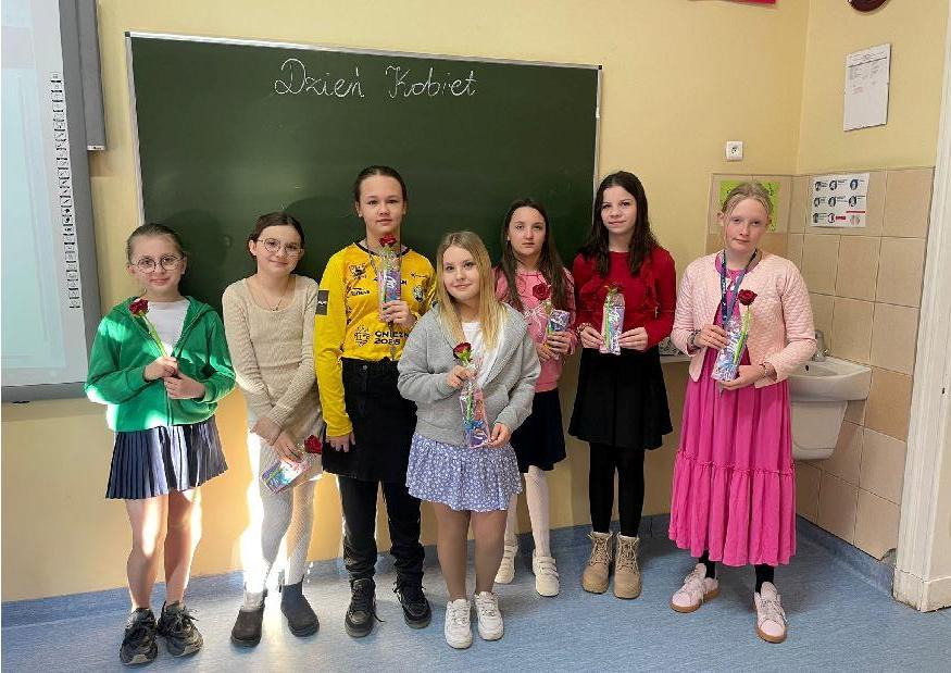 Dnia 9 marca obchodziliśmy w szkole Dzień Kobiet. Tego dnia, w ramach całorocznego konkursu międzyklasowego „Mistrzem być”, Samorząd Uczniowski zaproponował, aby dziewczynki założyły sukienkę lub spódniczkę. Ponadto dziewczynki mogły przebrać się za sławne postacie, za co w zamian otrzymały „bony edukacyjne” do wykorzystania podczas lekcji. Dzień był okazją do życzeń zarówno dla dziewcząt, jak i nauczycielkom.