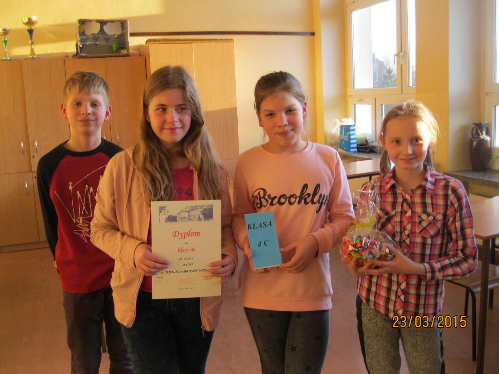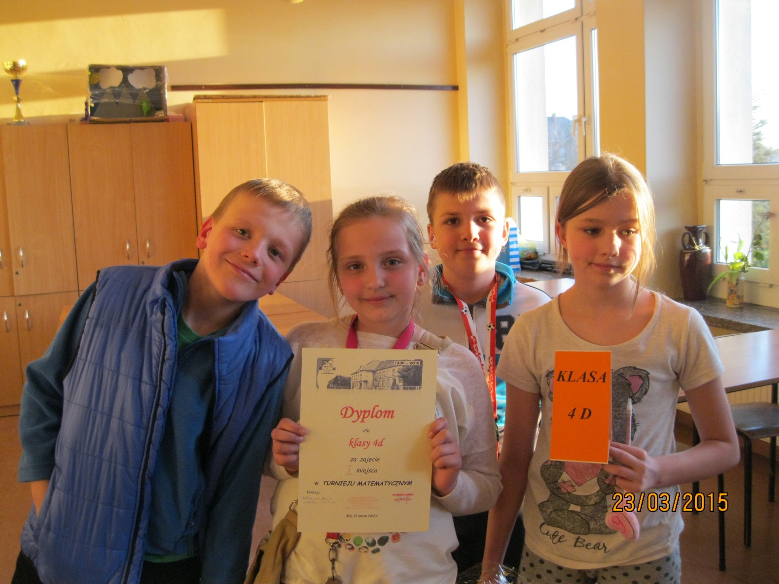 Dnia 23 marca 2015 roku odbył się w Szkole Podstawowej w Buku „Turniej matematyczny dla klas IV”. Głównym celem turnieju była integracja zespołów klasowych i międzyklasowych poprzez zabawę oraz wspólne działanie. Uczniowie rozwiązywali karty prawda – fałsz, rebusy, zadania niestereotypowe, wykazywali się spostrzegawczością, logicznym myśleniem oraz wiedzą matematyczną. Spotkanie było okazją do wspólnej zabawy i przyczyniło się do propagowania matematyki na co dzień. Uczniowie z dużym zaangażowaniem przystępowali do kolejnych konkurencji. Komisja w składzie: Kamila Kaseja, Katarzyna Kleszcz i Waldemar Świdurski przyznała miejsca: