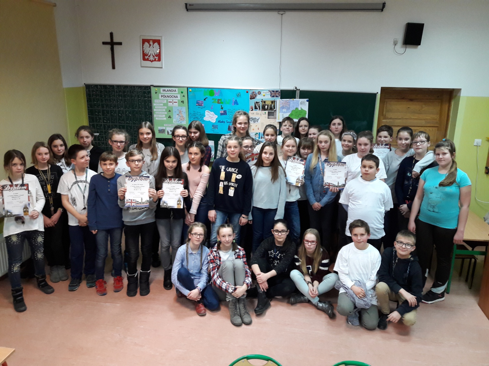 Dnia 22 lutego 2017r. odbył się w naszej szkole Turniej Wiedzy o Krajach Anglojęzycznych. Do rywalizacji przystąpiło 8 drużyn pięcioosobowych reprezentujących poszczególne klasy 5 i 6. Każda drużyna przygotowała plakat wraz z krótką charakterystyką poszczególnych państw posługujących się językiem angielskim. Przedmiotem turnieju były zadania dotyczących geografii, historii, kultury i tradycji związanych z obszarem krajów anglojęzycznych, w tym : Wielkiej Brytanii, Stanów Zjednoczonych, Kanady, Nowej Zelandii oraz Australii. Zadania konkursowe oceniała komisja, w skład której weszli nauczyciele języka angielskiego: Magdalena Pecold, Anna Krzemińska i Donata Witczak. Ze względu na jednakową ilość punktów zdobytych przez klasy 5b i 5c została przeprowadzona dogrywka, w wyniku której zwyciężyła klasa 5c.