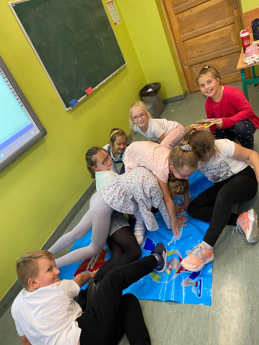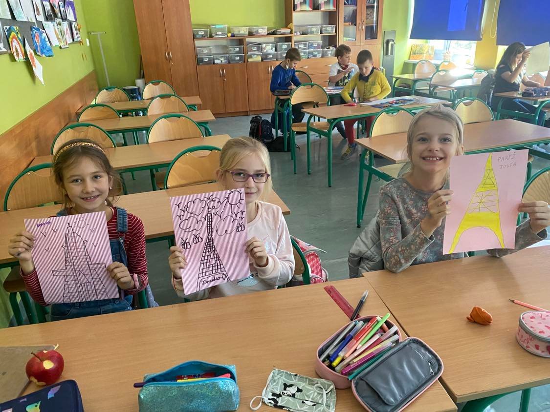 Na kółku podróżniczym „W sandałkach przez świat” dzieci odwiedziły Francję. W pozyskiwaniu informacji opiekun koła, pani Jagoda Adam, wykorzystuje różne formy: zabawy z chustą klanzy, rysunek, grę na instrumentach, elementy TIK – gry i filmy edukacyjne.
