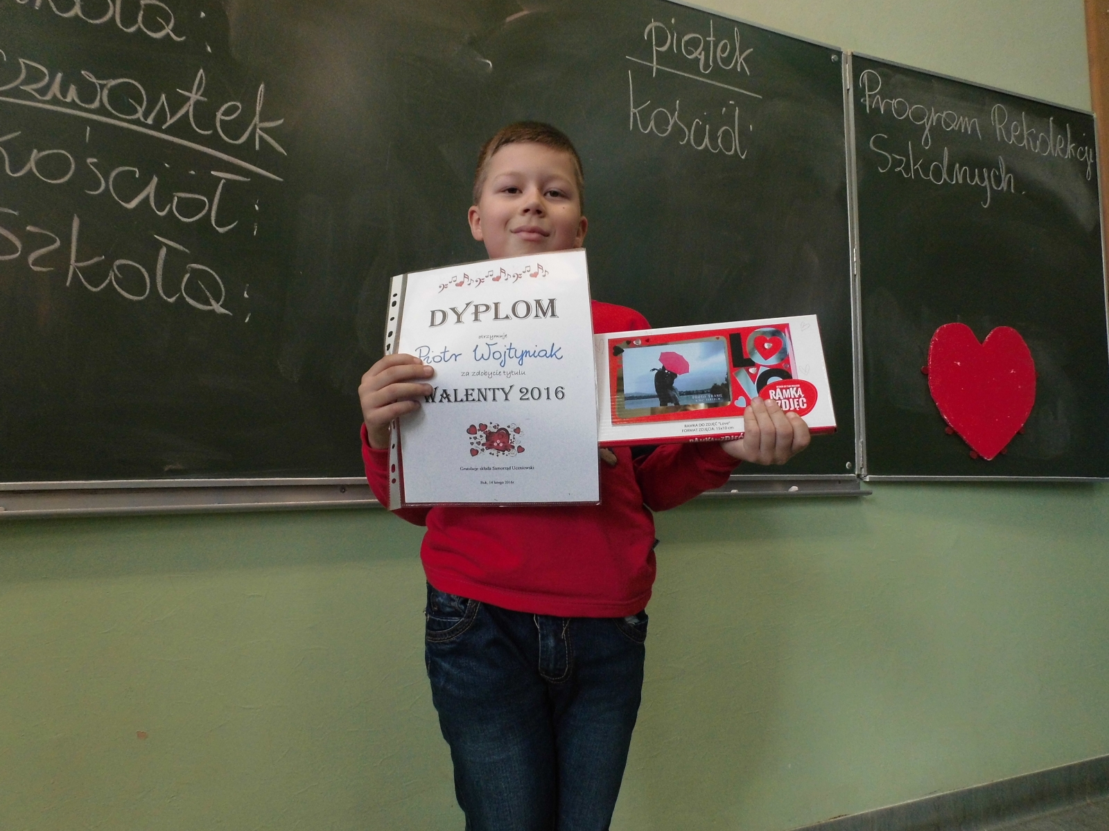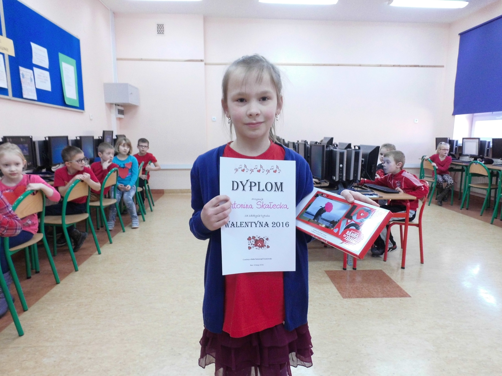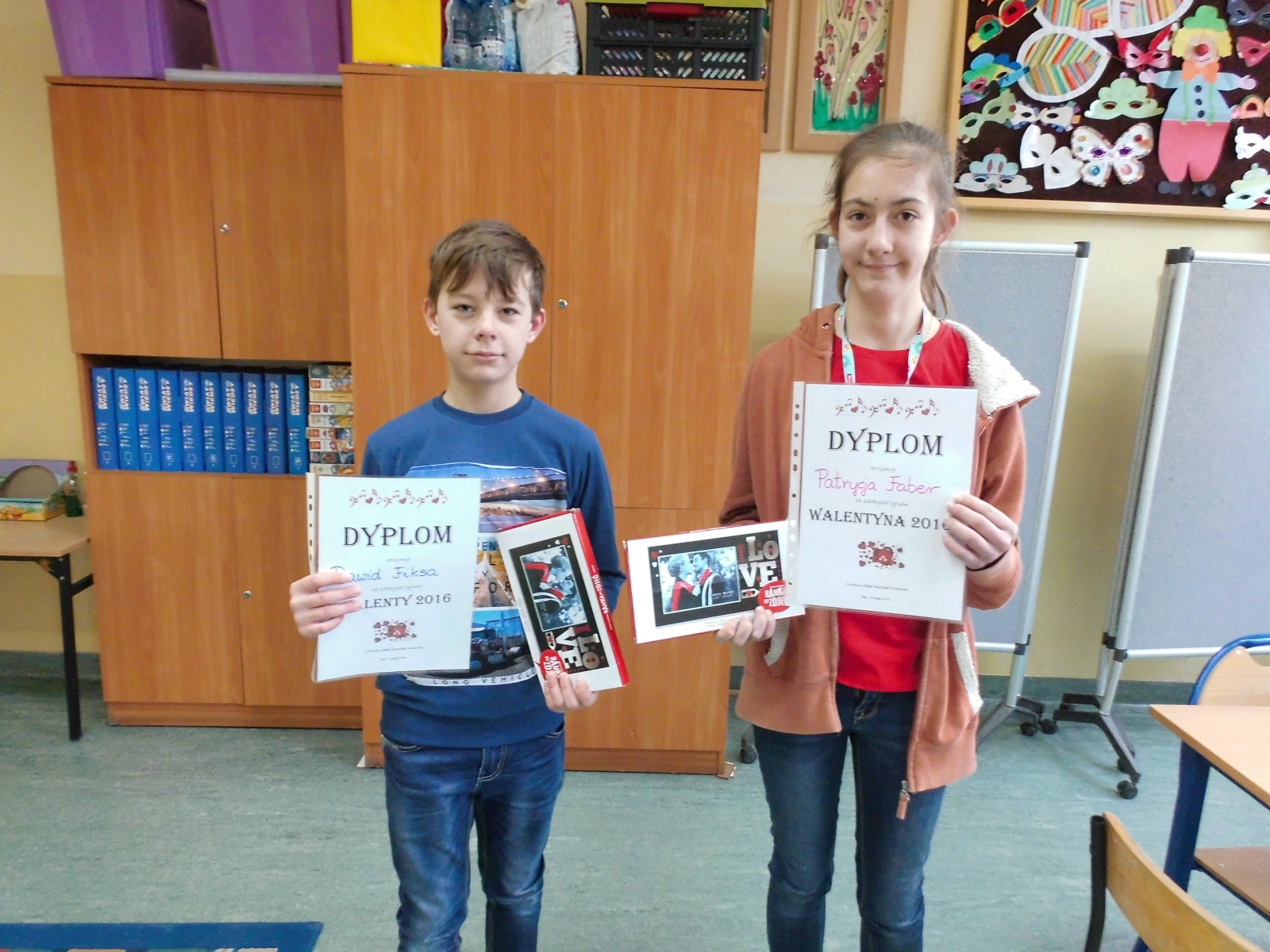 W piątek 12 lutego odbyły się szkolne walentynki. Wszyscy uczniowie ubrani byli w tym dniu w rzeczy z akcentem czerwieni. Walentynkowi listonosze roznosili pocztę walentynkową. Kartki walentynkowe można było wcześniej zakupić podczas kiermaszu na terenie szkoły lub wykonać własnoręcznie. Przez kilka dni dzieci wrzucały walentynki do specjalnie przygotowanych skrzynek walentynkowych. Samorząd Uczniowski przyznał tytuły Walentyny i Walentego 2016 zarówno w klasach I-III jak i IV-VI. Tytuły te zdobyły osoby, które otrzymały najwięcej walentynek. Uczniowie ci dostali pamiątkowe dyplomy oraz drobne upominki. Dzień upłynął w szkole w serdecznej i przyjaznej atmosferze.