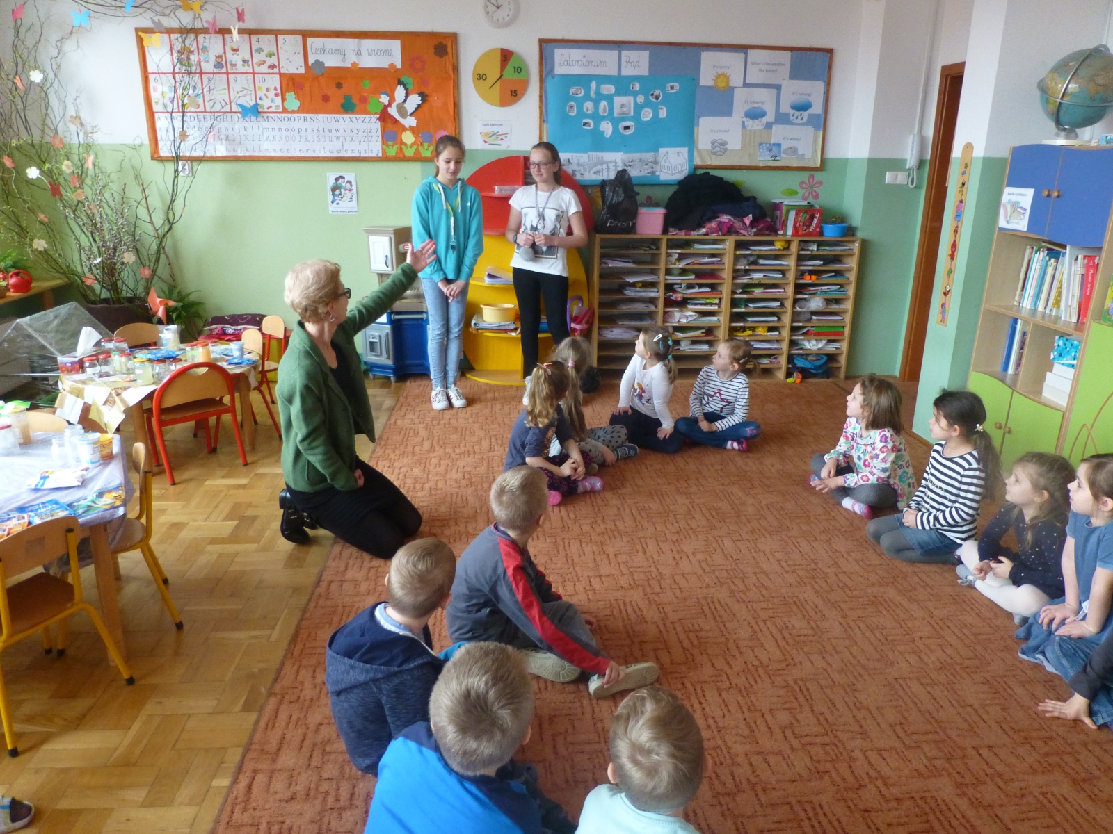 23 kwietnia 2017 1291 Views 0 Likes Warsztaty przyrodnicze dla dzieci z Przedszkola Krasnala Hałabały Pani Lucyna Tonder wraz z uczniami z klasy 6d przeprowadziła w Przedszkolu Krasnala Hałabały warsztaty przyrodnicze dla dzieci. Oto fotorelacja.