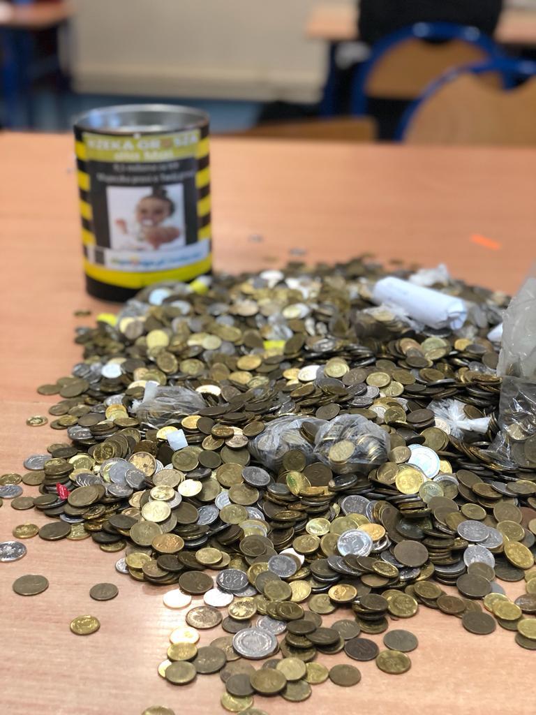 Jesteśmy na półmetku zbiórki dla małej Mai ze Zbąszynia. Zebraliśmy już 2 worki puszek, worek zakrętek, 2 kartony baterii. Z akcji sprzedaży rogali świętomarcińskich otrzymaliśmy od Samorządu Uczniowskiego 1300 złotych, a do skarbonek zebraliśmy około 890 złotych.
