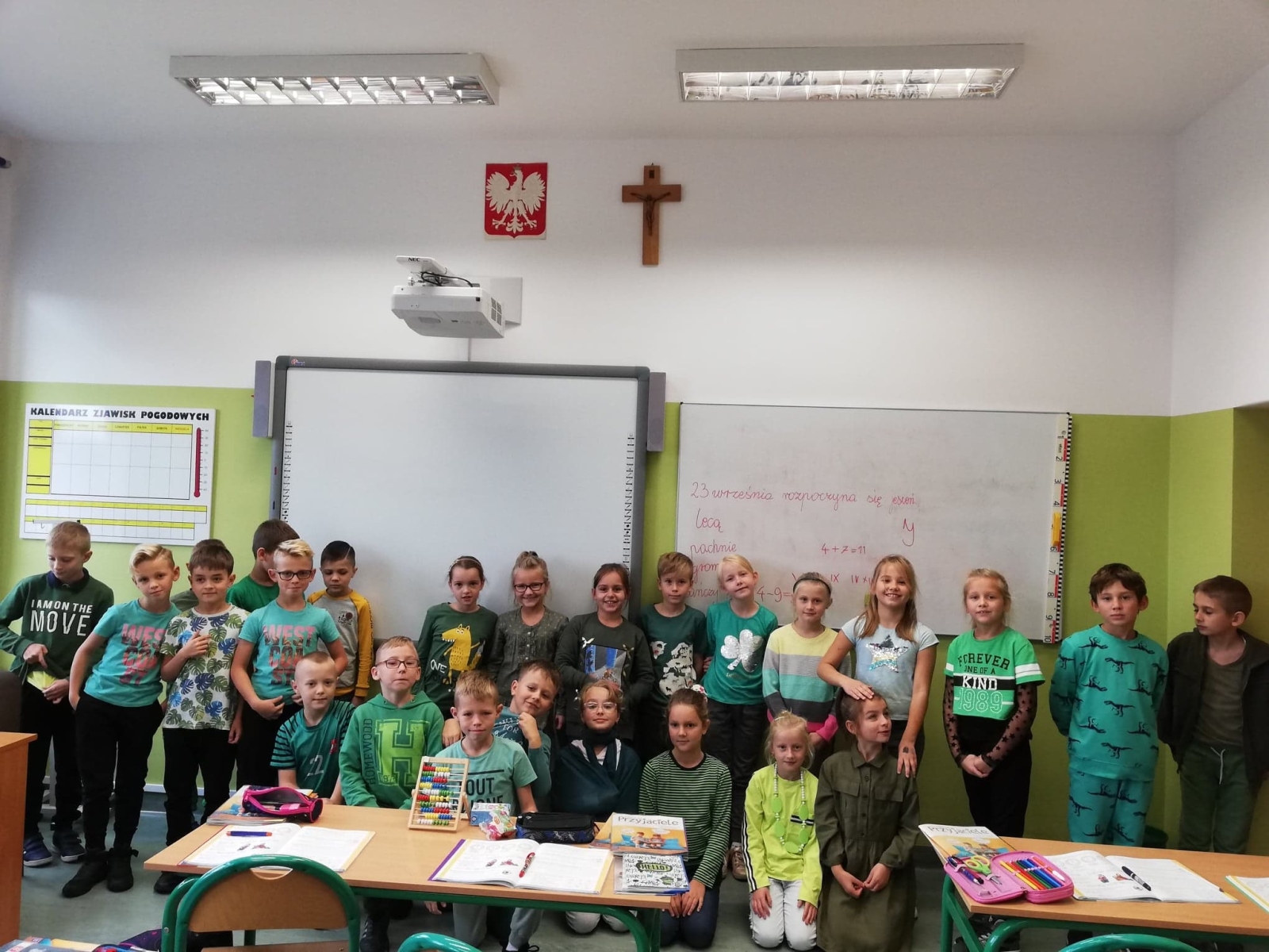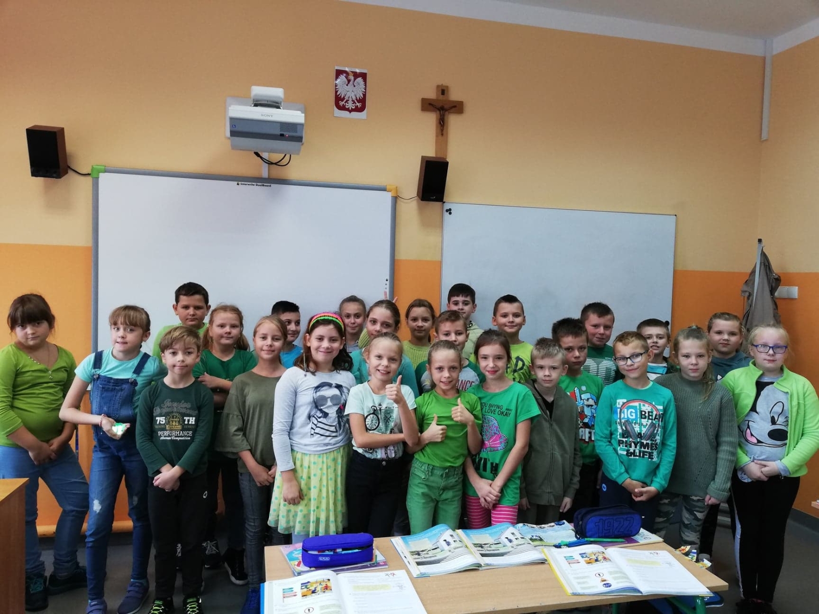 4 października 2019 995 Views 0 Likes Zielony dzień w klasach 1-3 „Nie śmiecimy – sprzątamy, zmieniamy”. W pierwszy wtorek października byliśmy ubrani na zielono, aby pamiętać, że należy dbać o naszą planetę.